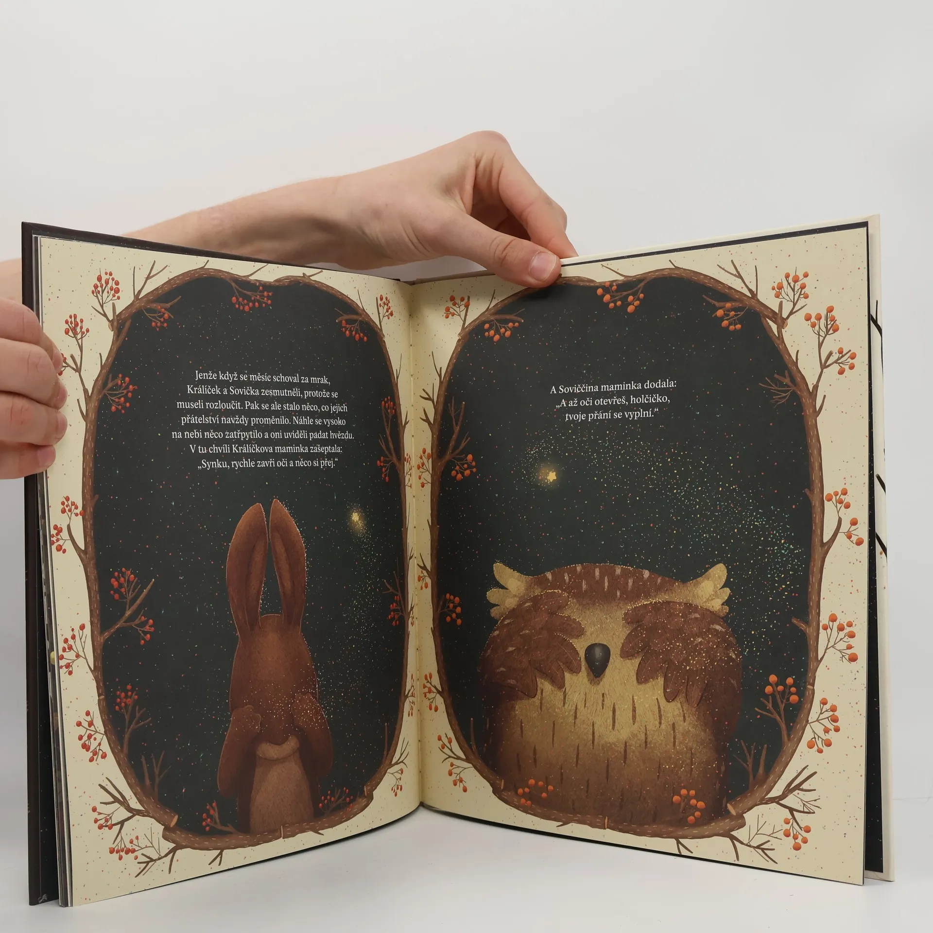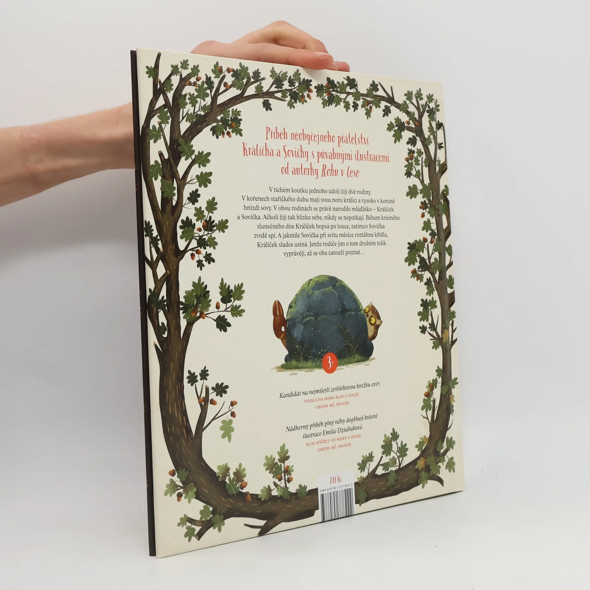 Příběh neobyčejného přátelství králíčka a sovičky s půvabnými ilustracemi od autorky Roku v lese. U kořenů starého dubu bydlí králičí rodinka a vysoko v koruně nad nimi hnízdí sovy. V obou rodinách se právě narodilo mláďátko. Ačkoli žijí tak blízko sebe, málokdy se potkají. Když je krásný, slunečný den a Králíček běhá po louce, Sovička tvrdě spí. A jakmile Sovička v odlesku měsíce roztáhne křídla, Králíček sladce usíná. Tak ubíhají dny i noci a Králíček se Sovičkou se nikdy nepotkají. Jenže rodiče jim o tom druhém tolik vyprávějí, až se oba zatouží poznat… Pro děti od tří let. ---- Nádherný příběh plný něhy doplňují krásné ilustrace Emilie Dziubakové. - Blog Knížky od mámy o knize Obejmi mě, prosím Kandidát na nejmilejší zvířátkovou knížku ever. - Ninnulina mama blog o knize Obejmi mě, prosím