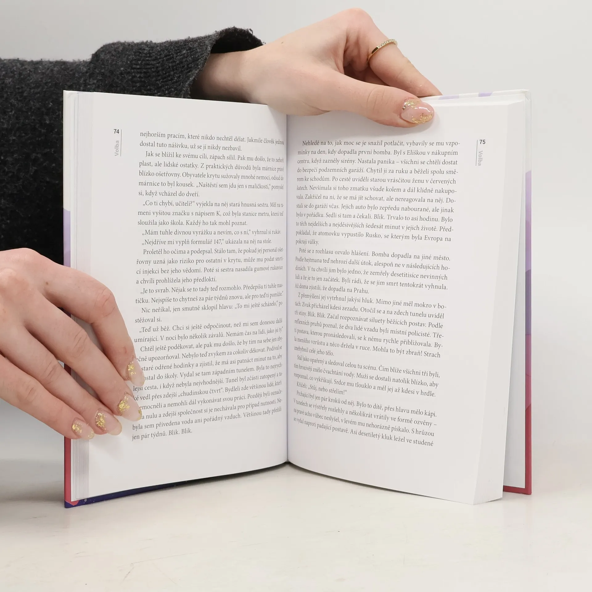"Zdá se mi o světě v plamenech. O jaderných bombách, které dopadají jedna za druhou a polykají města jako rakovina. O našem dožívání v podzemním krytu, kde se z nás pomalu stávají zvířata. Ty sny jsou tak živé. Bojím se, že se jednou budu chtít probudit a zjistím, že je pozdě.“ Tomáš je mladý muž v nejlepších letech. Ačkoliv se zdá, že mu nic neschází, upadá do stále větší deprese. V práci to s ním jde od desíti k pěti a po marných pokusech vzdává i snahu o opětovné sblížení se svou ženou Eliškou. Aby toho nebylo málo, pronásledují ho postapokalyptické sny plné beznaděje. Depresivní nálada ho opustí až v okamžiku, kdy se seznámí s podivínským psychologem Kohlem, který mu ukáže, jak být šťastným a lepším člověkem. To je ovšem jen začátek Tomášova příběhu, který nakonec vyústí ve strhující finále. Volba je literárním debutem mladého českého autora Jakuba Trpiše. Prolínají se v ní prvky duchovní literatury, sci-fi, detektivky, psychologického i milostného románu. Volba se v roce 2018 stala bestsellerem, kdy se jí prodalo 15 000 výtisků. Téhož roku vyšlo třetí vydání s pevnou vazbou i novou obálku a také anglický překlad The Choice.