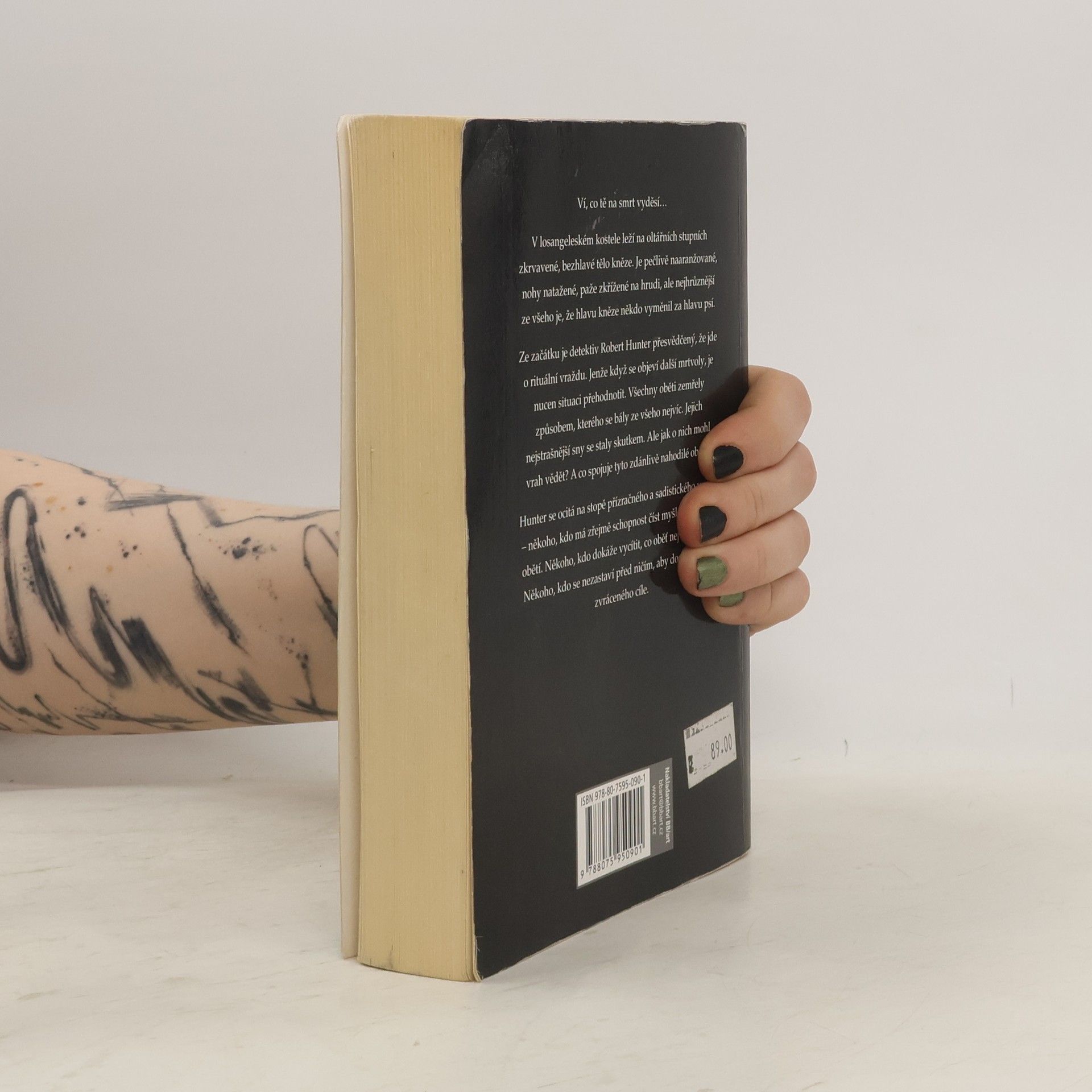 Ví, co tě na smrt vyděsí… V losangeleském kostele leží na oltářních stupních zkrvavené, bezhlavé tělo kněze. Je pečlivě naaranžované, nohy natažené, paže křížené na hrudi, ale nejhrůznější ze všeho je, že hlavu kněze někdo vyměnil za hlavu psí. Ze začátku je detektiv Robert Hunter přesvědčený, že jde o rituální vraždu. Jenže když se objeví další mrtvoly, je nucen situaci přehodnotit. Všechny oběti zemřely způsobem, kterého se bály ze všeho nejvíc. Jejich nejstrašnější sny se staly skutkem. Ale jak o nich mohl vrah vědět? A co spojuje tyto zdánlivě nahodilé oběti? Hunter se ocitá na stopě přízračného a sadistického vraha – někoho, kdo má zřejmě schopnost číst myšlenky svých obětí. Někoho, kdo dokáže vycítit, co oběť nejvíc vyděsí. Někoho, kdo se nezastaví před ničím, aby dosáhl svého zvráceného cíle.