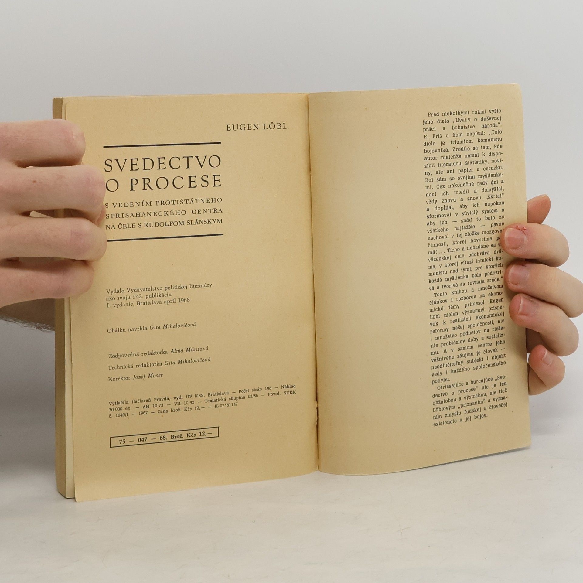 Skladem máme celkem 2ks knihy Svedectvo o procese (1968).