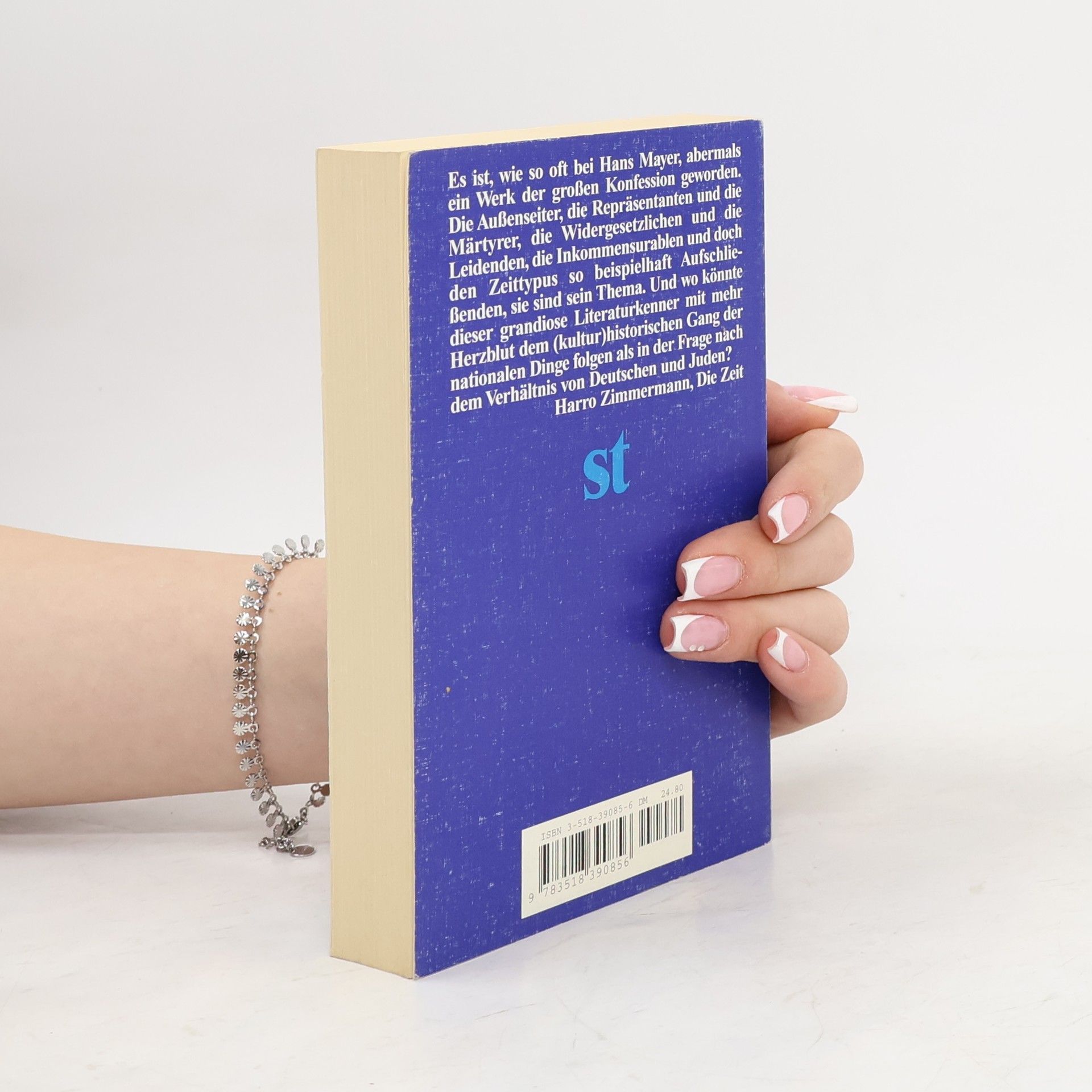 Es ist, wie so oft bei Hans Mayer, abermals ein Werk der großen Konfession geworden. Die Außenseiter, die Repräsentanten und die Märtyrer, die Widergesetzlichen und die Leidenden, die Inkommensurablen und doch den Zeittypus so beispielhaft Aufschließenden, sie sind sein Thema. Und wo könnte dieser grandiose Literaturkenner mit mehr Herzblut dem (kultur-)historischen Gang der nationalen Dinge folgen als in der Frage nach dem Verhältnis von Deutschen und Juden? Harro Zimmermann, Die Zeit