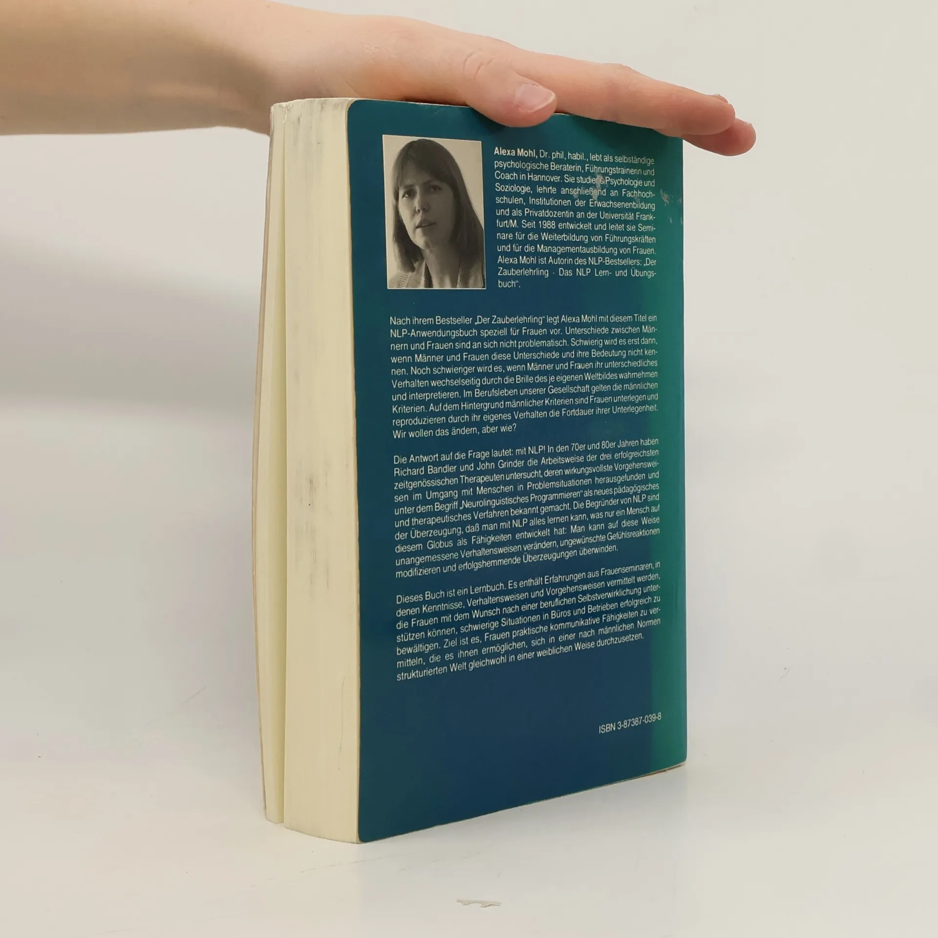 Nach ihrem Bestseller „Der Zauberlehrling“ präsentiert Alexa Mohl ein NLP-Anwendungsbuch für Frauen. Unterschiede zwischen Männern und Frauen sind nicht problematisch, aber problematisch wird es, wenn diese Unterschiede und deren Bedeutung unbekannt sind. Noch herausfordernder wird es, wenn das Verhalten beider Geschlechter durch das eigene Weltbild interpretiert wird. In der Berufswelt dominieren männliche Kriterien, wodurch Frauen oft benachteiligt sind und unbewusst ihre Unterlegenheit reproduzieren. Die Lösung liegt in der Anwendung von NLP. In den 70er und 80er Jahren untersuchten Richard Bandler und John Grinder die Methoden erfolgreicher Therapeuten und entwickelten das Konzept des Neurolinguistischen Programmierens als neues pädagogisches und therapeutisches Verfahren. Sie glauben, dass mit NLP alle menschlichen Fähigkeiten erlernt und unangemessene Verhaltensweisen, unerwünschte Emotionen und einschränkende Überzeugungen verändert werden können. Dieses Buch dient als Lernbuch und enthält Erfahrungen aus Frauenseminaren, die Frauen bei der beruflichen Selbstverwirklichung unterstützen. Es vermittelt kommunikative Fähigkeiten, die es Frauen ermöglichen, sich in einer von männlichen Normen geprägten Welt erfolgreich durchzusetzen.