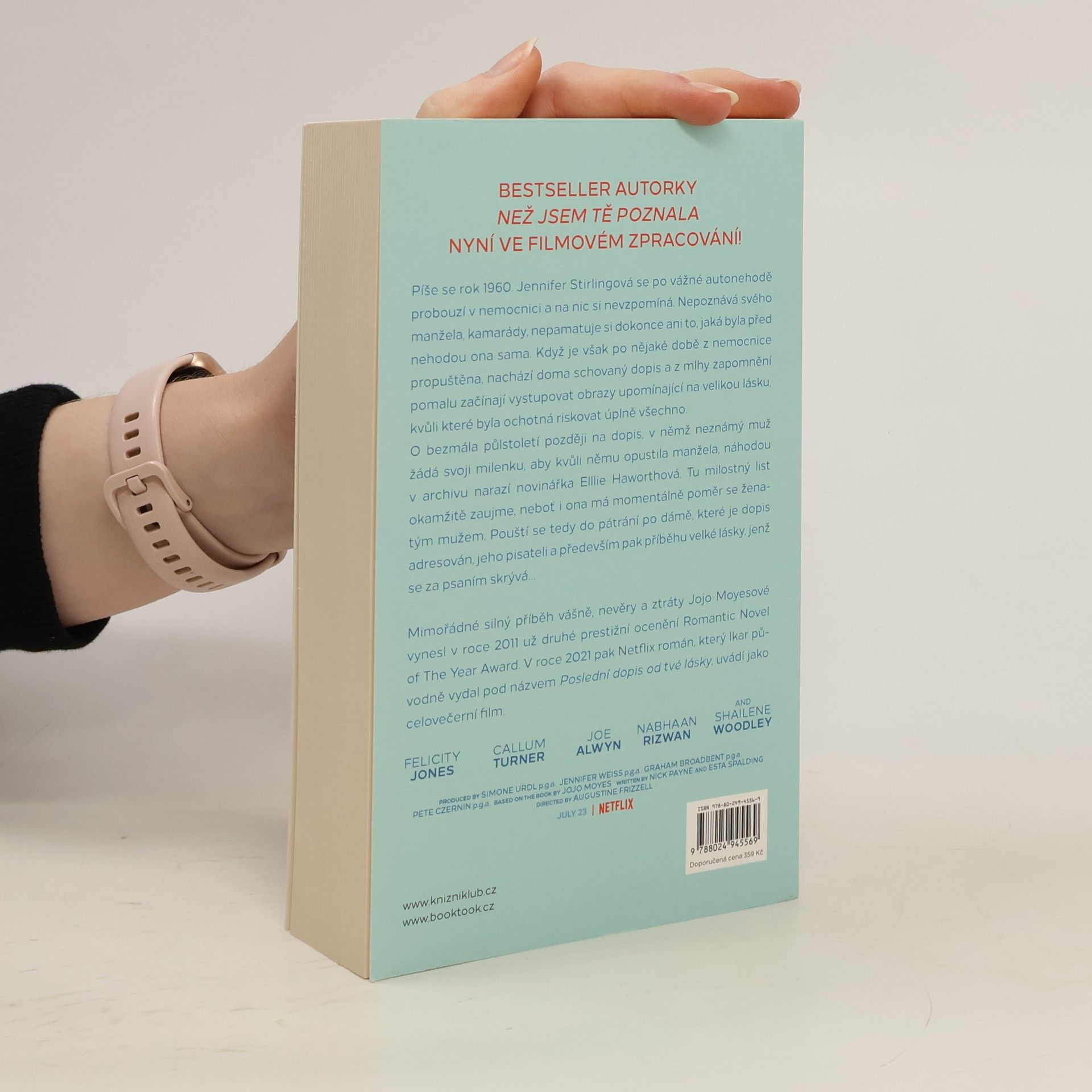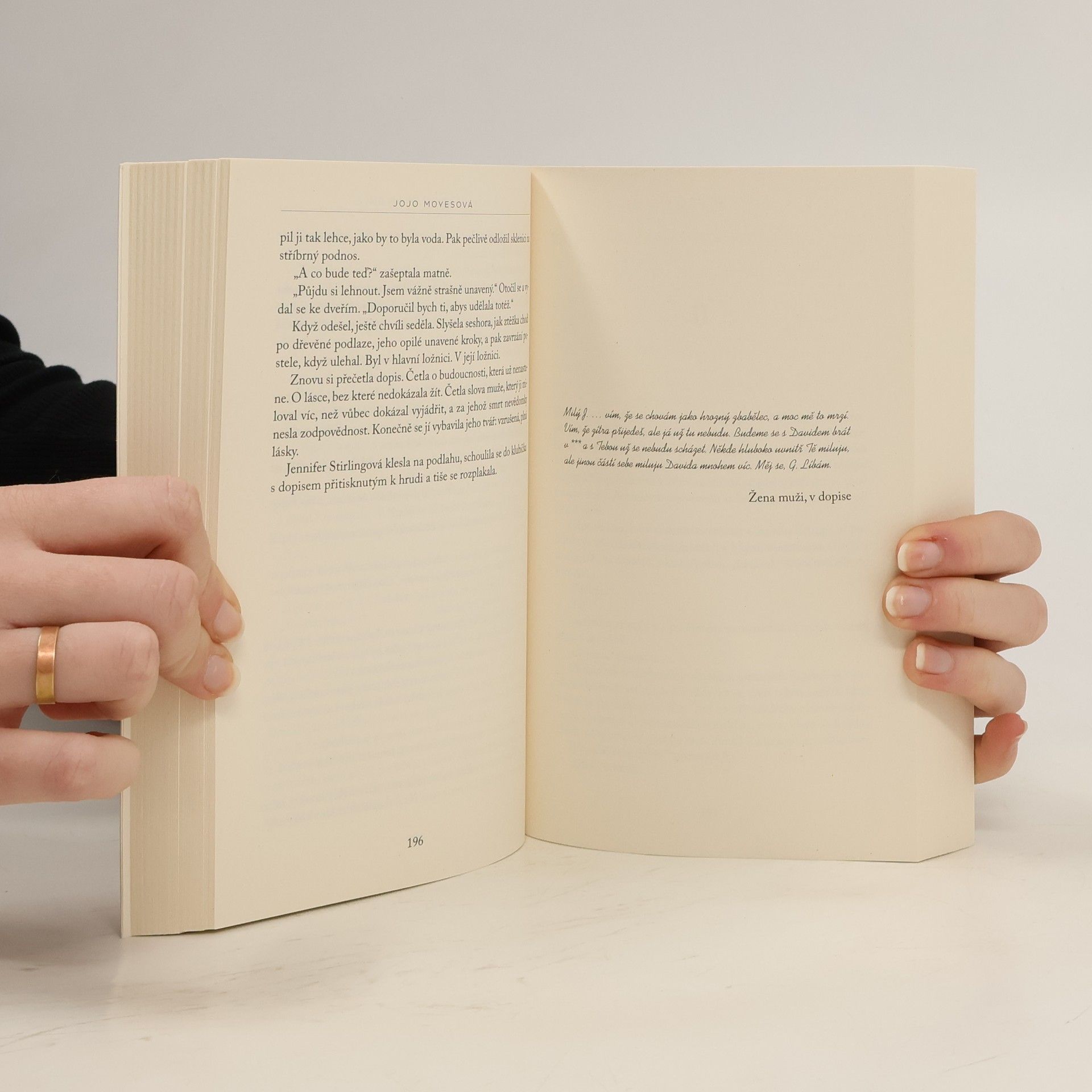 Píše se rok 1960. Jennifer Stirlingová se po vážné autonehodě probouzí v nemocnici a na nic si nevzpomíná. Nepoznává svého manžela, kamarády, nepamatuje si dokonce ani to, jaká byla před nehodou ona sama. Když je však po nějaké době z nemocnice propuštěna, nachází doma schovaný dopis a z mlhy zapomnění pomalu začínají vystupovat obrazy upomínající na velikou lásku, kvůli které byla ochotná riskovat úplně všechno. O bezmála půlstoletí později na dopis, v němž neznámý muž žádá svoji milenku, aby kvůli němu opustila manžela, náhodou v archivu narazí novinářka Elllie Haworthová. Tu milostný list okamžitě zaujme, neboť i ona má momentálně poměr se ženatým mužem. Pouští se tedy do pátrání po dámě, které je dopis adresován, jeho pisateli a především pak příběhu velké lásky, jenž se za psaním skrývá… Mimořádné silný příběh vášně, nevěry a ztráty Jojo Moyesové vynesl v roce 2011 už druhé prestižní ocenění Romantic Novel of The Year Award. V roce 2021 pak Netflix román, který Ikar původně vydal pod názvem Poslední dopis od tvé lásky, uvádí jako celovečerní film.