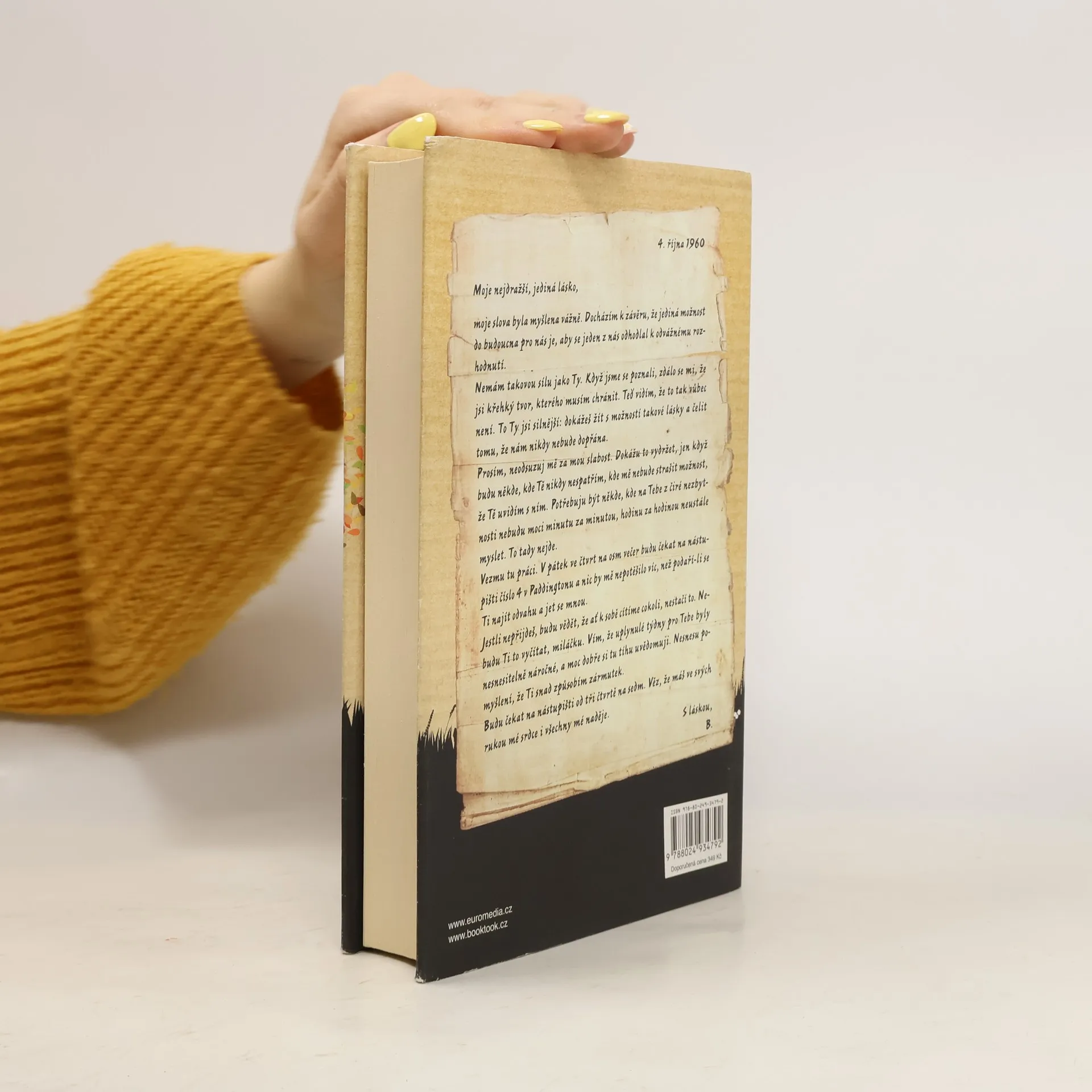 Mimořádně silný příběh vášně, nevěry a ztráty z pera respektované britské autorky Jojo Moyesové, který získal v roce 2011 prestižní ocenění The Romantic Novel of the Year Award. Novinářka Elllie při pátrání v archivu narazí na půlstoletí starý dopis, v němž neznámý muž žádá svoji milenku, aby opustila manžela. Elllie příběh, skrývající se za dopisem, okamžitě zaujme – i ona sama má poměr se ženatým mužem. Rok 1960. Jennifer Stirlingová leží v nemocnici po vážné autonehodě a na nic si nepamatuje – na manžela, na své kamarády, ani na to, jaká byla ona sama. Když se však vrátí z nemocnice domů a najde tajný dopis, pomalu se začíná rozpomínat na milence, kvůli kterému byla kdysi ochotná riskovat úplně všechno.