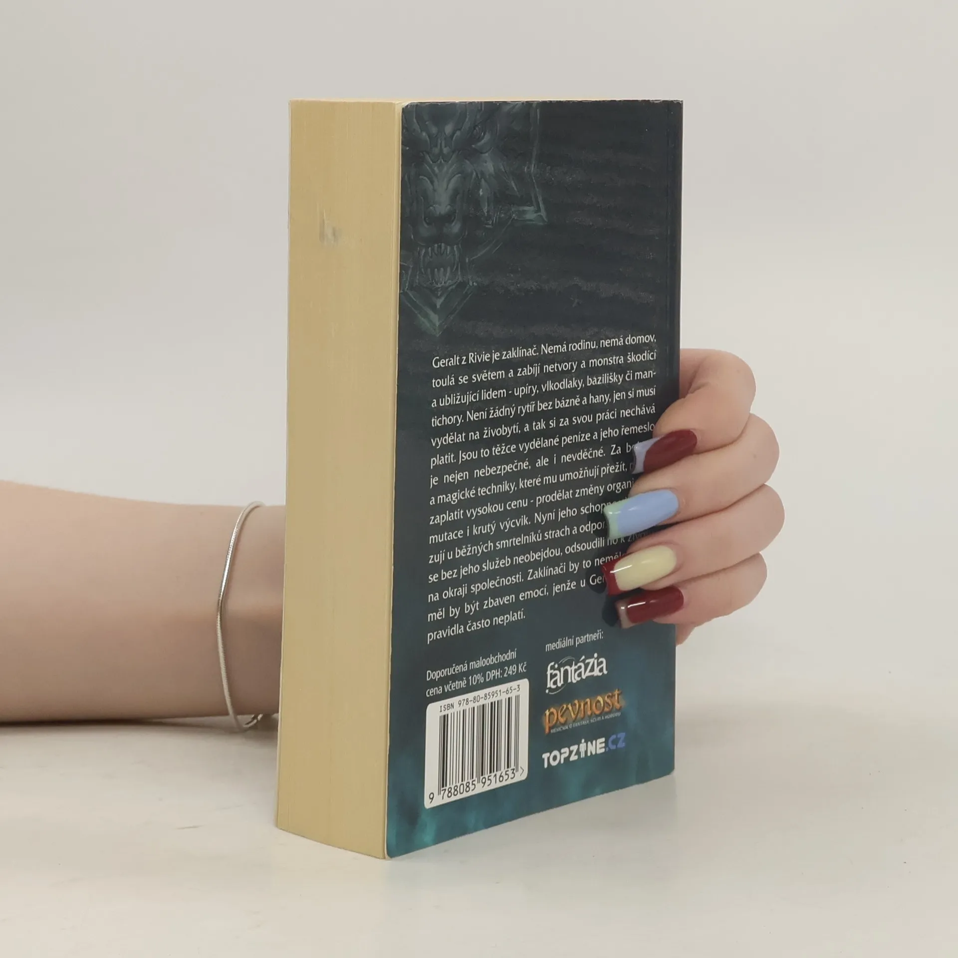 Zaklínač... Ošlehaný muž bez věku, jehož bílé vlasy nejsou znakem stáří, ale mutace, kterou musel podstoupit. Placený i dobrovolný likvidátor prapodivných tvorů – mantichor, trollů, vidlohonů, strig, amfisbain – pokud ovšem ohrožují lidský rod; v takovém případě zabíjí i bytost zvanou člověk. Prvotřídní, skvělý bojovník, který není neporazitelný ani nezranitelný – naopak, téměř z každého dobrodružství si odnáší další šrámy na těle i na duši. Nově přeložené geraltovské povídky ze Stříbrného meče, něco z Věčného ohně a Meče osudu, doplněné povídkou Hlas rozumu, kde Geralt vysvětluje, jak to všechno začalo. Povídky: - Cesta, z níž není návratu (Droga, z której się nie wraca) - Hlas rozumu (Głos rozsądku) - Zaklínač (Wiedźmin) - Zrnko pravdy (Ziarno prawdy) - Menší zlo (Mniejsze zło) - Otázka ceny (Kwestia ceny) - Konec světa (Kraniec świata) - Poslední přání (Ostatnie życzenie)