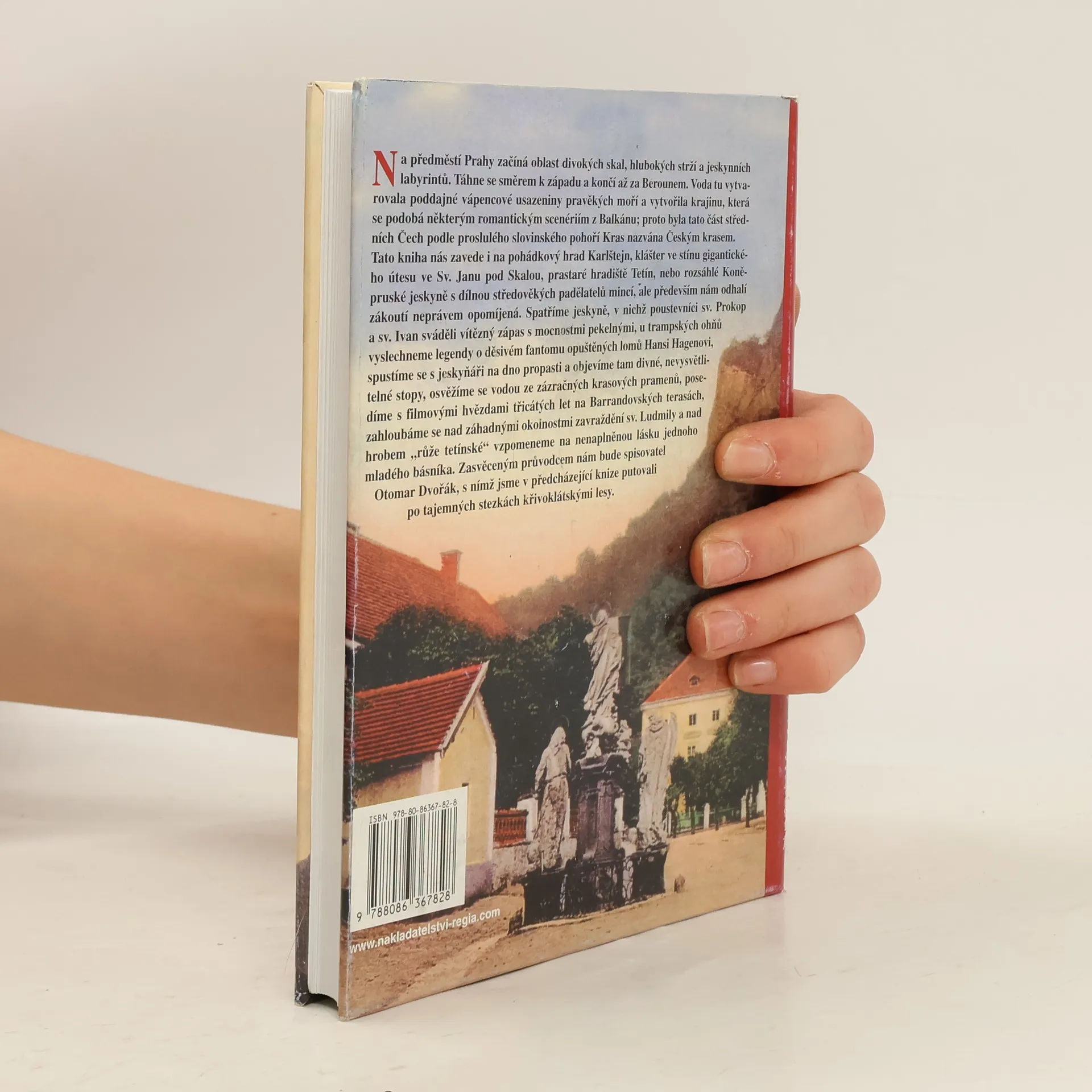 Na předměstí Prahy začíná oblast divoce rozervaných skal, hlubokých strží a jeskynních labyrintů. Táhne se směrem k západu a končí až za Berounem. Voda tady vytvarovala poddajné vápencové usazeniny pravěkých moří a vytvořila krajinu, která se podobá některým romantickým scenériím z Balkánu; proto byla tato část středních Čech podle proslulého slovinského pohoří Kras nazvána Českým krasem. Tato kniha nás zavede i na pohádkový hrad Karlštejn, klášter ve stínu gigantického útesu ve Sv. Janu pod Skalou, prastaré hradiště Tetín, nebo rozsáhlé Koněpruské jeskyně s dílnou středověkých padělatelů mincí, ale především nám odhalí zákoutí neprávem opomíjená. Spatříme jeskyně, v nichž poustevníci sv. Prokop a sv. Ivan sváděli vítězný zápas s mocnostmi pekelnými, u trampských ohňů vyslechneme legendy o děsivém fantomu opuštěných lomů Hansi Hagenovi, spustíme se s jeskyňáři na dno propasti a objevíme tam divné, nevysvětlitelné stopy, osvěžíme se vodou ze zázračných krasových pramenů, posedíme s filmovými hvězdami třicátých let na Barrandovských terasách, zahloubáme se nad záhadnými okolnostmi zavraždění sv. Ludmily a nad hrobem "Růže tetínské" vzpomeneme na nenaplněnou lásku jednoho mladého básníka. Zasvěceným průvodcem nám opět bude spisovatel Otomar Dvořák, s nímž jsme v předcházející knize putovali po tajemných stezkách křivoklátskými lesy