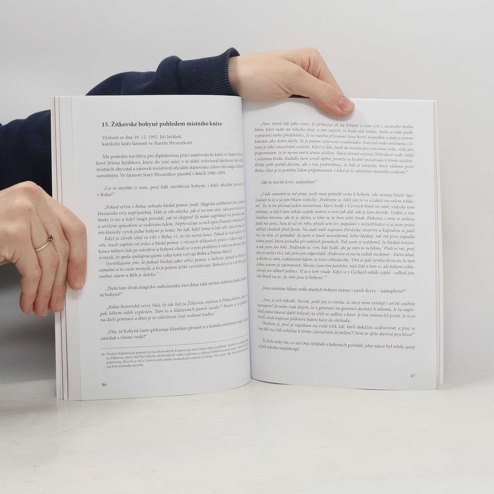 Druhé, rozšířené vydání úspěšné publikace Ústavu evropské etnologie Filozofické fakulty Masarykovy univerzity. Práce vychází z autentických terénních výzkumů uskutečněných autorkou v letech 1990–1992 u dvou posledních žijících bohyní Irmy Gabrhelové a Kateřiny Hodulíkové na Žítkové v Bílých Karpatech. S odstupem několika let (1995–1996) na ně navázaly další terénní sběry, které jsou věnovány již výhradně bohyni I. Gabrhelové, její osobnosti a praktikám. Práci uzavírají terénní výzkumy z let 2013–2014 sledující pamětníky, kterým je toto téma blízké především v souvislosti s jejich dětstvím. V úvodních částech publikace osvětluje autorka počátky zájmu o problematiku bohyní na Moravských Kopanicích ve vlastivědné a národopisné literatuře. Připomíná také některé klíčové osobnosti badatelského zájmu o bohyně, jakými byli např. František Bartoš, Ferdinand Dúbravský či Josef Hofer. V následujících kapitolách je uveden rozbor jednotlivých autentických zaříkávání a magických praktik, dále rozbor magického obřadu s ohledem na praktikování homeopatické a kontaktní magie. Závěr práce je věnován logice magického myšlení a sledování styčných bodů se současnými podobami magie u recentních léčitelů.