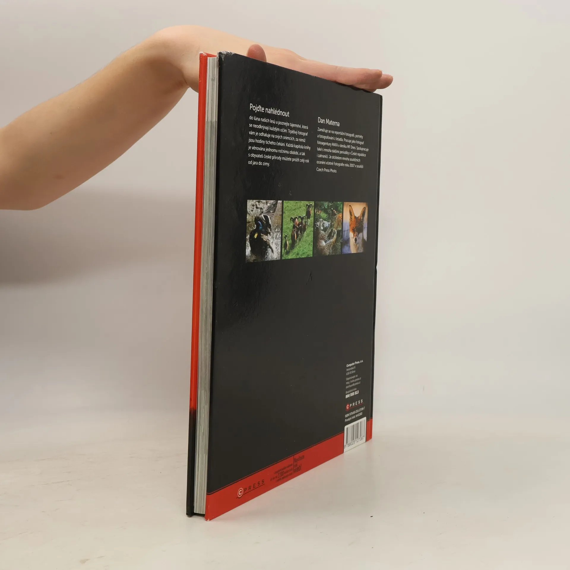 Pojďte nahlédnout do lůna našich lesů a poznejte tajemství, která se neodkrývají každým očím. Trpělivý fotograf vám je odhaluje na svých snímcích, za nimiž jsou hodiny tichého čekání. Každá kapitola knihy je věnována jednomu ročnímu období, a tak s obyvateli české přírody můžete prožít celý rok od jara do zimy. Dan Materna Zaměřuje se na reportážní fotografii, portréty a fotografování z letadla. Pracuje jako fotograf fotoagentury MAFA v deníku MF Dnes. Spolupracuje také s mnoha dalšími periodiky v České republice i zahraničí. Je držitelem mnoha soutěžních ocenění včetně Fotografie roku 2007 v soutěži Czech Press Photo.