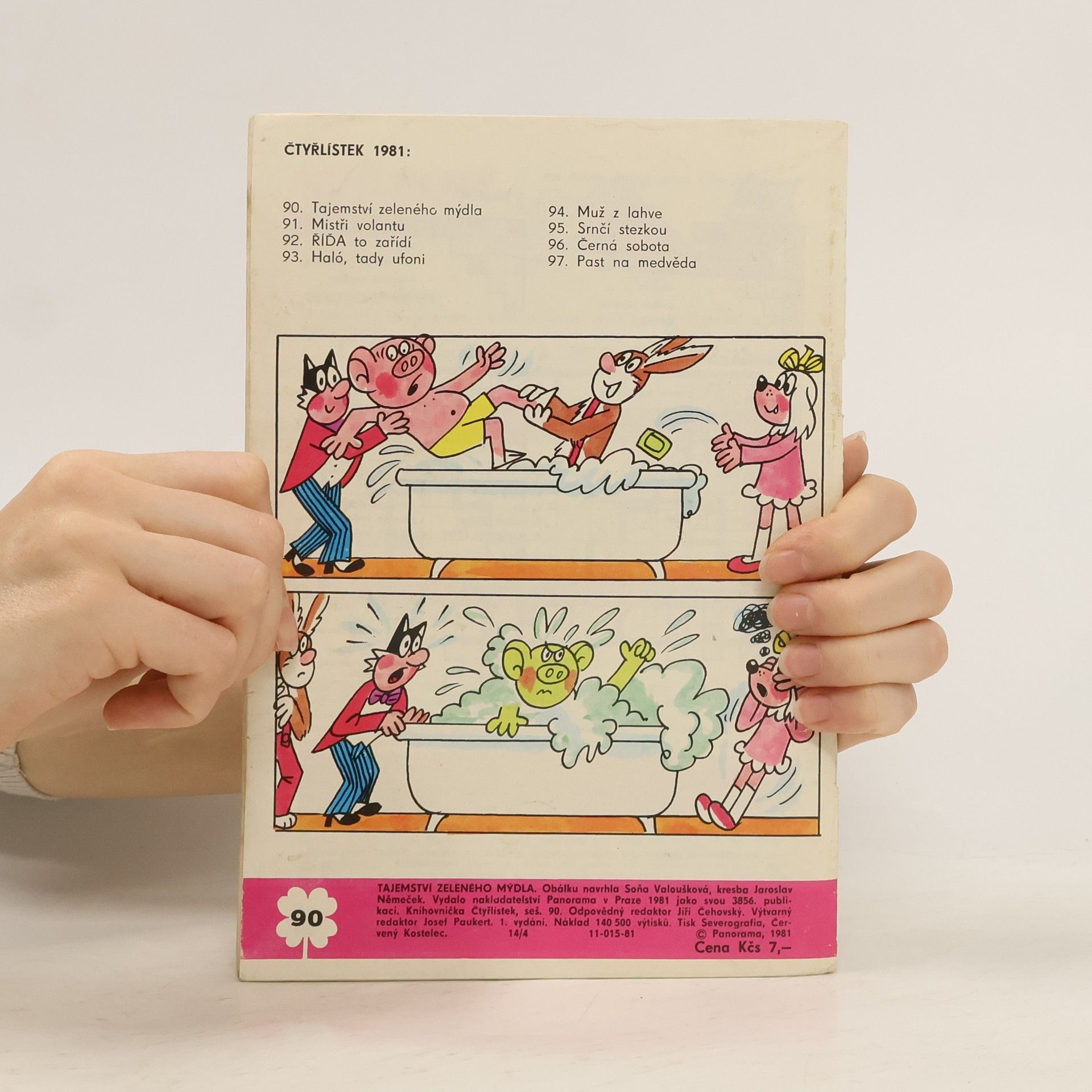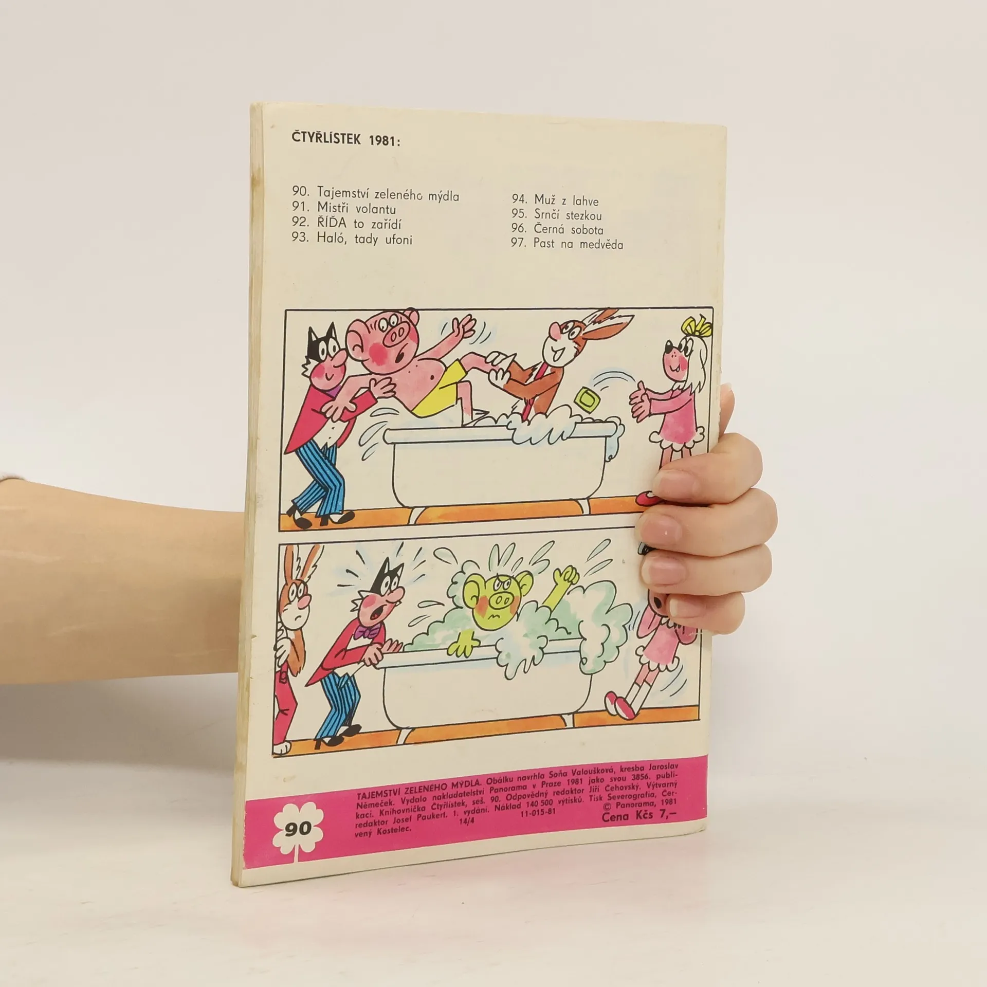 Skladem máme celkem knihy Čtyřlístek 90. Tajemství zeleného mýdla (1981).