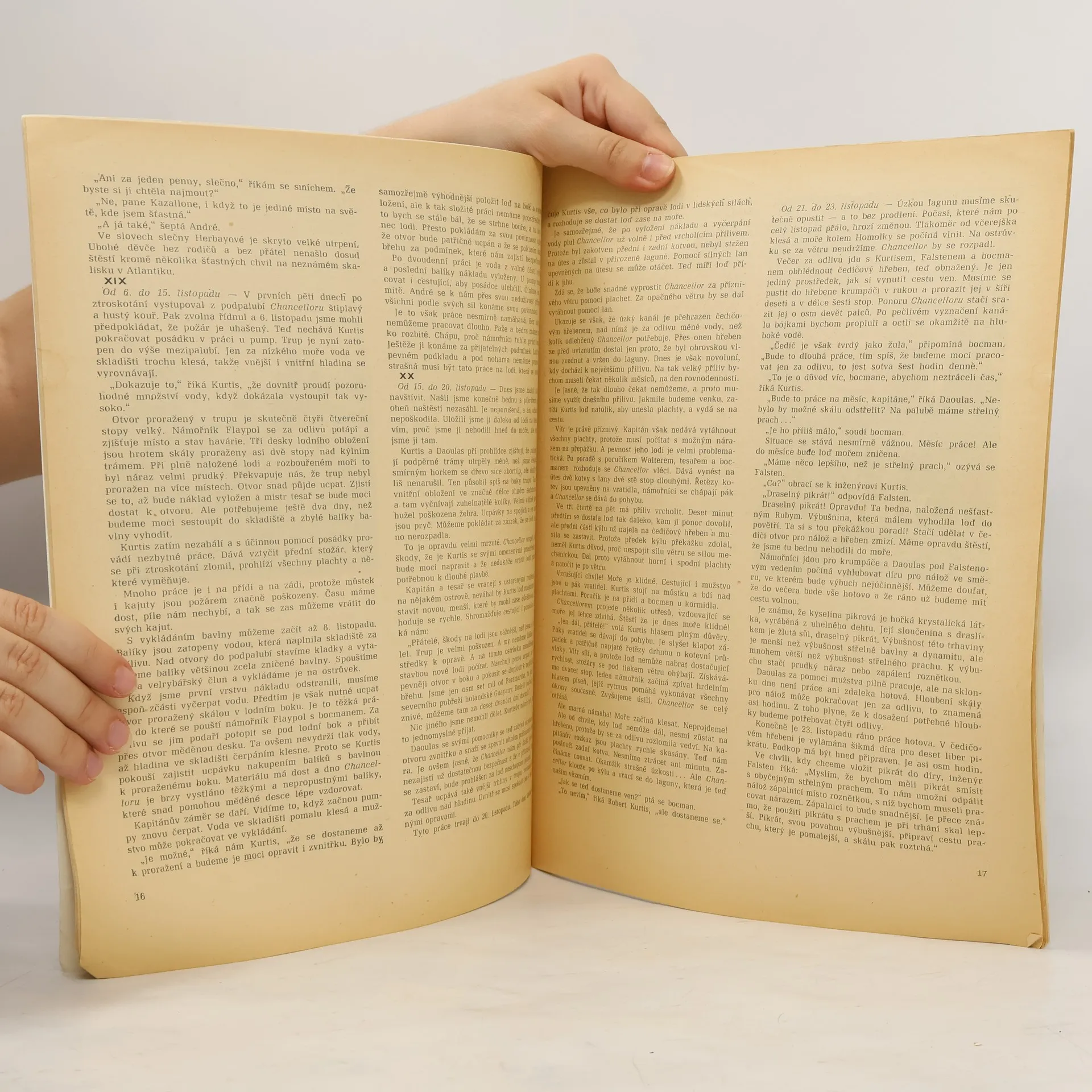 Souborné vydání dvou kratších Verneových prací, první vyšla poprvé v roce 1875, druhá v roce 1884. Chancellor – Když se v září 1869 nalodila na palubu trojstěžníku Chancellor, směřujícího z Charlestonu do Liverpoolu posádka a cestující, nikdo z nich netušil, jak dobrodružná plavba ječeká. Téměř měsíc poklidné cesty je náhle ukončen požárem v podpalubí lodi, a nakonec jejím ztroskotáním. Několik trosečníků se sice v poslední chvíli zachrání na voru, ale čeká je strastiplná, nelidsky krutá plavba Atlantickým oceánem. Celý příběh je líčen prostřednictvím deníku jednoho z trosečníků, pana J. R. Kazallona. Archipel v plamenech – V roce 1827 se odehrává příběh z řeckých ostrovů. Jeho hrdiny jsou Francouz Henry dʼAlbaret, statečně bojující po boku vlastenců za svobodu Řecka proti turecké nadvládě a jeho snoubenka, krásná Hadžina Elizundová. Ta se málem stane obětí záhadného Sakratifa, obávaného velitele pirátů, zapleteného do špinavých obchodů s otroky.