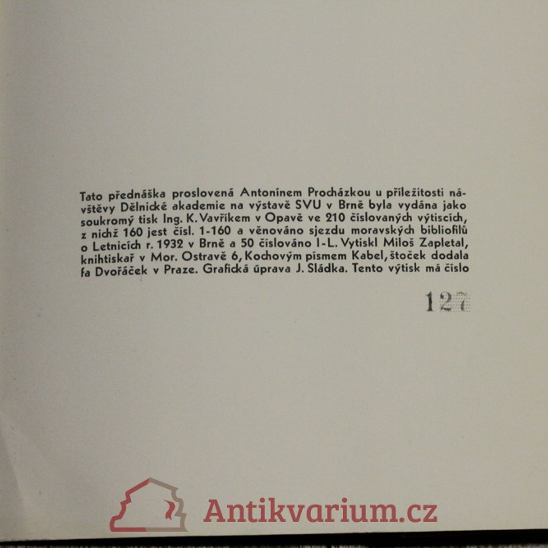 Před obrazem : přednáška proslovená u příležitosti návštěvy Dělnické akademie na výstavě SVU v Brně; číslo výtisku 127, Antonín Procházka