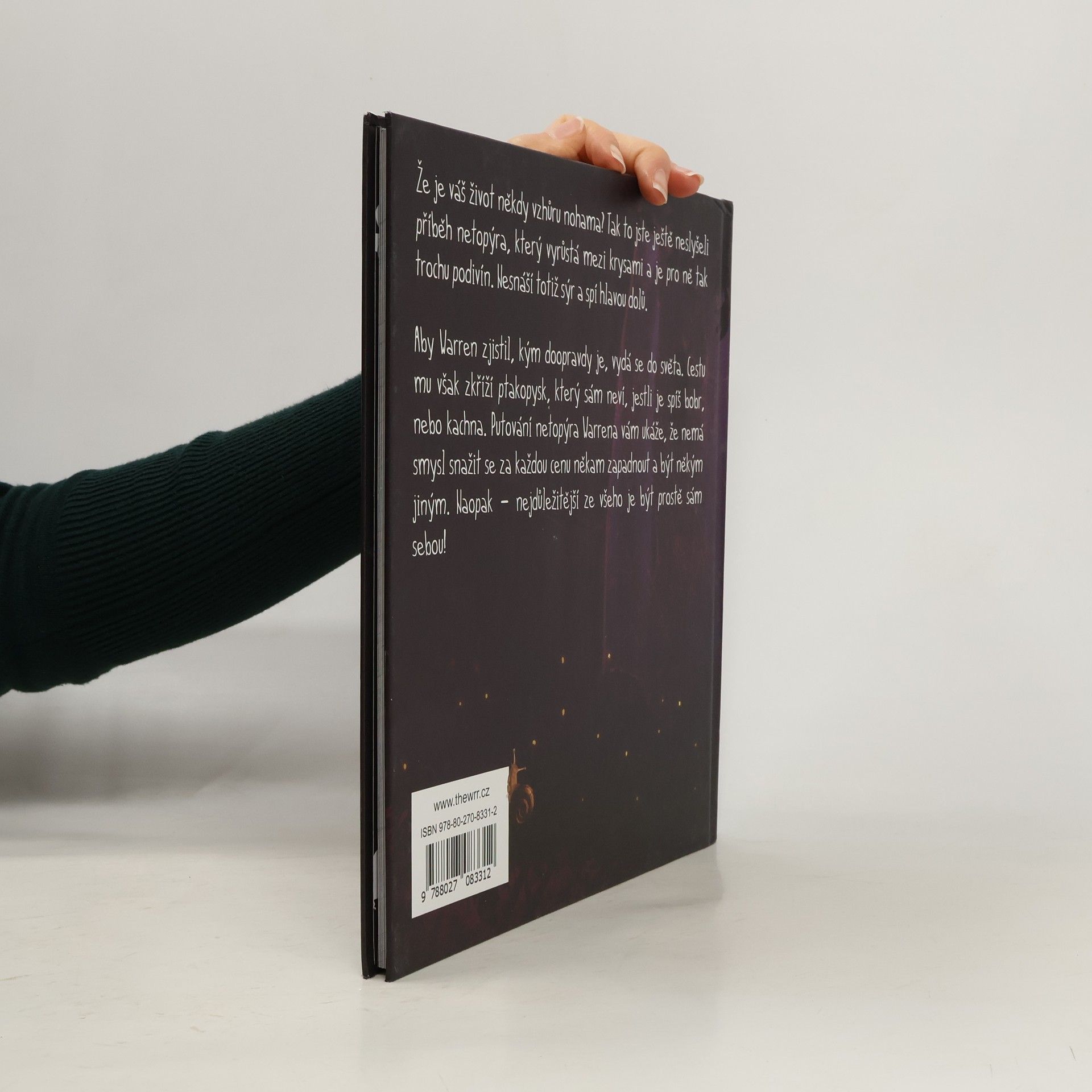 Že je váš život někdy vzhůru nohama? Tak to jste ještě neslyšeli příběh netopýra Warrena, který vyrůstá mezi krysami a je pro ně tak trochu podivín. Nesnáší totiž sýr a spí hlavou dolů. Aby Warren zjistil, kým doopravdy je, vydá se do světa. Cestu mu však zkříží ptakopysk, který sám neví, jestli je spíš bobr nebo kachna. Putování netopýra Warrena vám ukáže, že nemá smysl snažit se za každou cenu někam zapadnout a být někým jiným. Naopak – nejdůležitější ze všeho je být prostě SÁM SEBOU!
