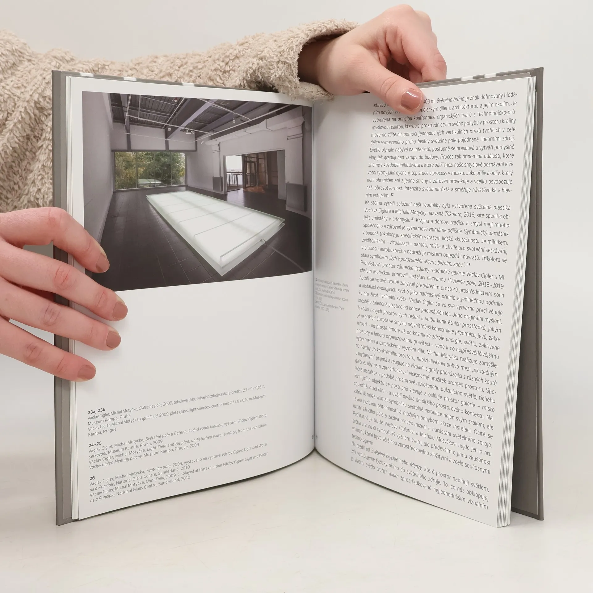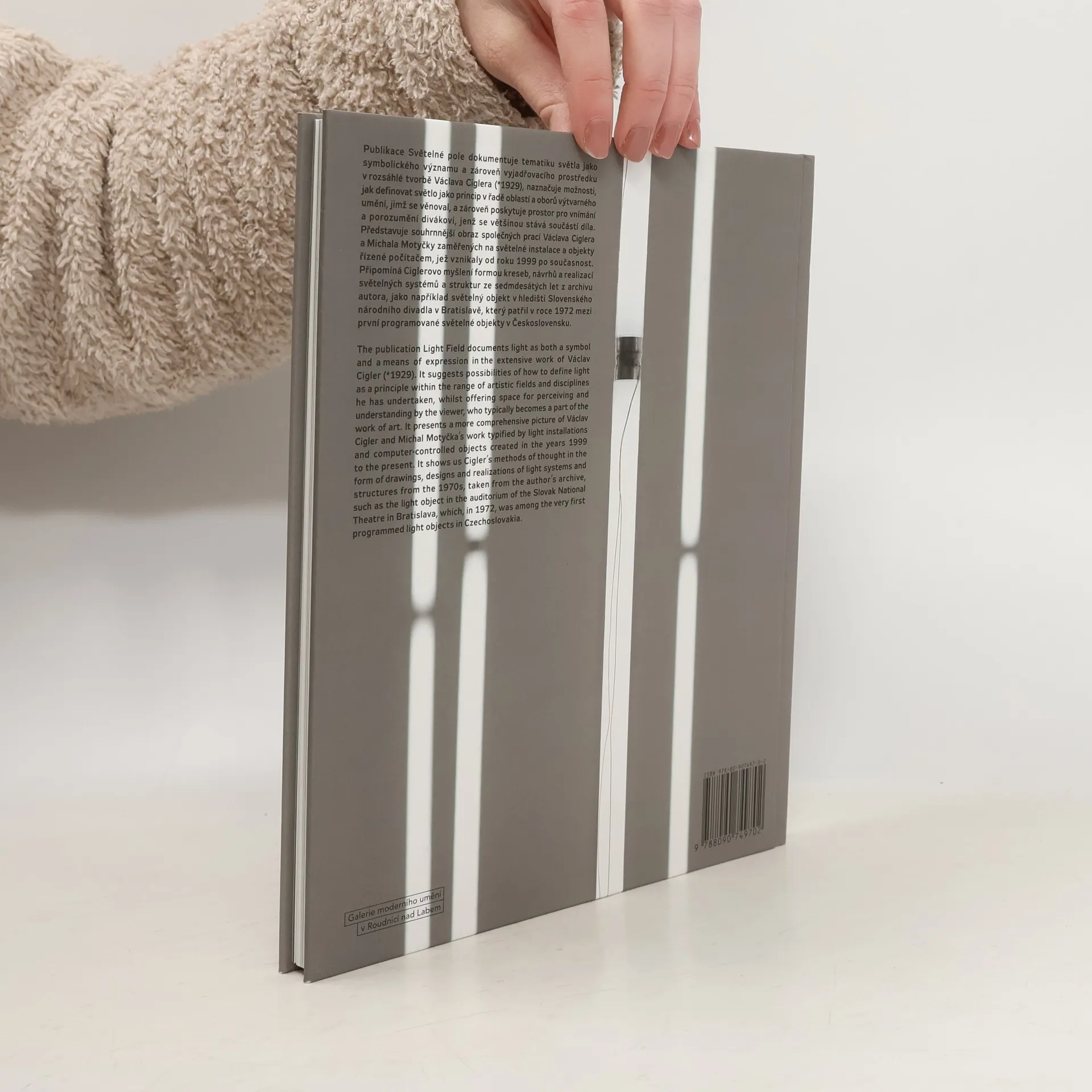 Česko-anglický katalog ke stejnojmenné výstavě, uskutečněné v rámci volného výstavního cyklu Osobnosti v době od 21. února 2019 do 5. květen 2019 v Galerii moderního umění v Roudnici nad Labem. Václav Cigler (*1929) s Michalem Motyčkou (*1974) připravili pro velký sál Galerie moderního umění v Roudnici n. L. site-specific instalaci nazvanou Světelné pole. Václav Cigler, který v době výstavy oslaví významné životní jubileum, se ve své výtvarné práci věnuje kresbě a skleněné plastice od konce padesátých let. Svým počínáním předjímal rodící se koncepty soudobého výtvarného vyjadřování (konstruktivní tendence, minimalismus, land-art, světelnou a kinetickou plastiku). Doménou jeho tvorby je práce s prostorem, se sklem, světlem a s vodou. Pandán k monumentální prostorové realizaci tvoří kresby, pracovní návrhy a realizace světelných systémů a struktur ze sedmdesátých let z archivu autora, jako například světelný objekt v hledišti Slovenského národního divadla v Bratislavě, který patřil v roce 1972 mezi první programované světelné objekty v Československu. Katalog k výstavě představuje souhrnnější obraz společných instalací Václava Ciglera a Michala Motyčky, jež vznikaly od roku 1999 po současnost. Je doplněn texty kurátorek výstavy Jany Šindelové a Magdaleny Deverové.