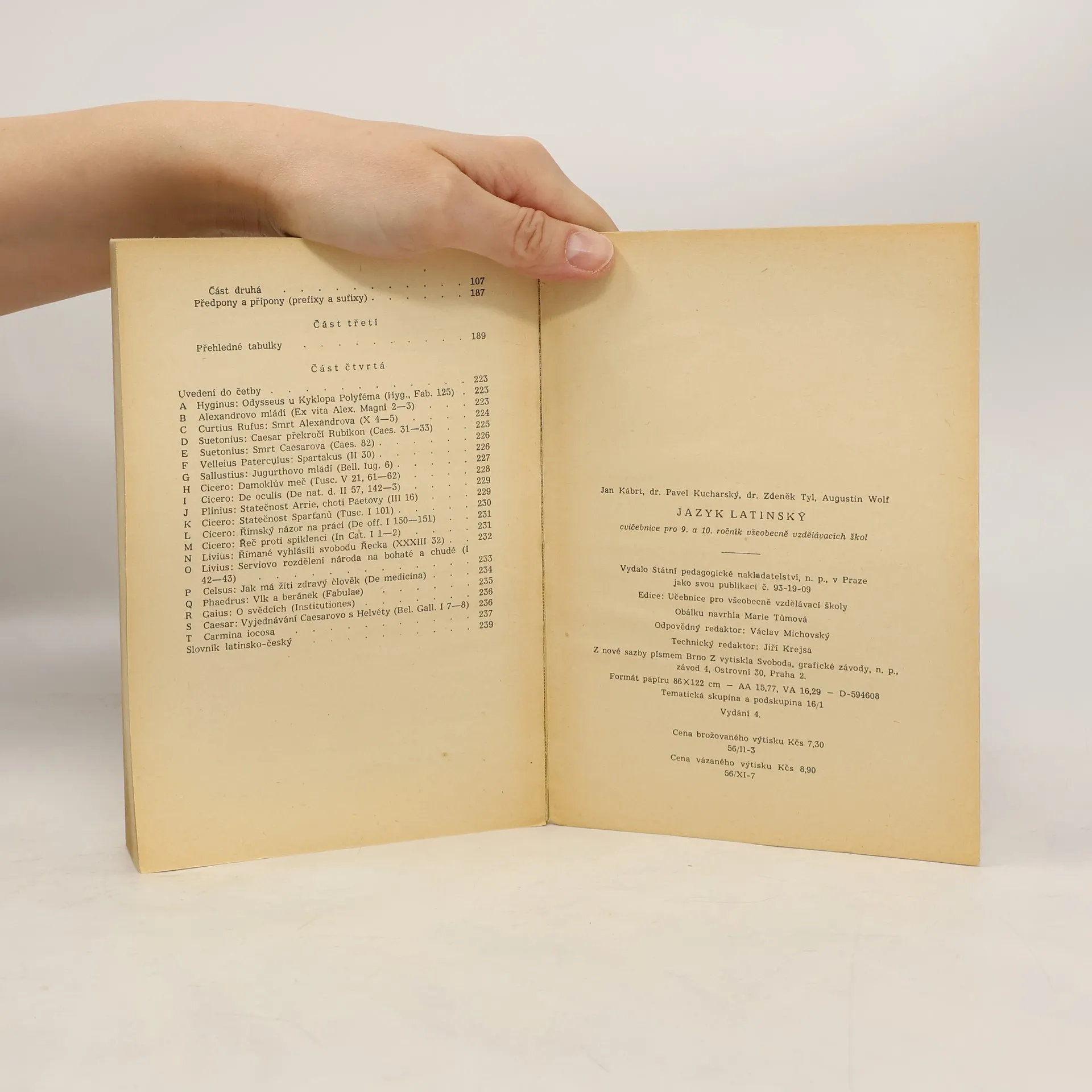 Prof. PhDr. Jan Kábrt, CSc., Doc. MUDr. Vladislav Valach: JAZYK LATINSKÝ - učebnice pro zdravotnické školy, IV. přepracované vydání.