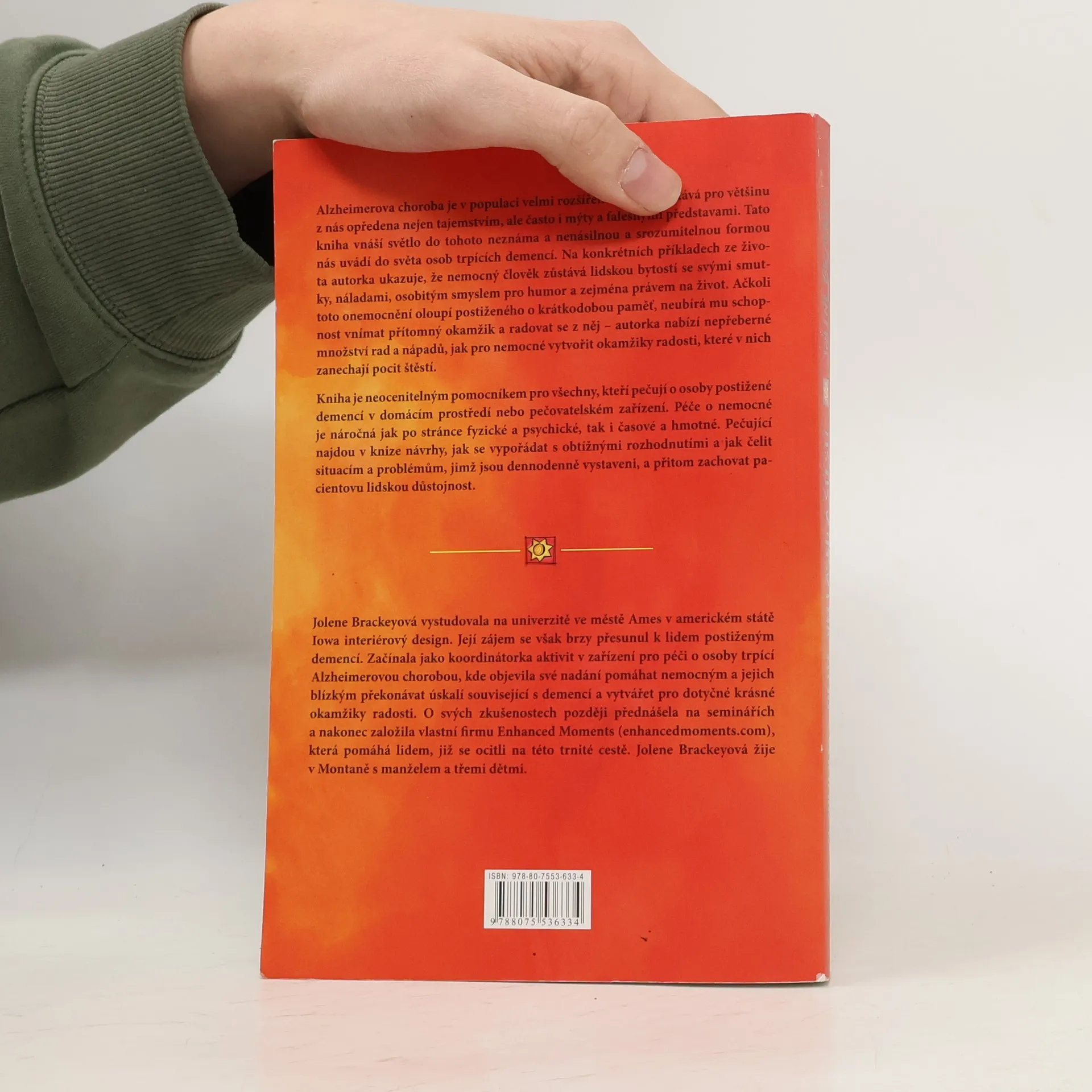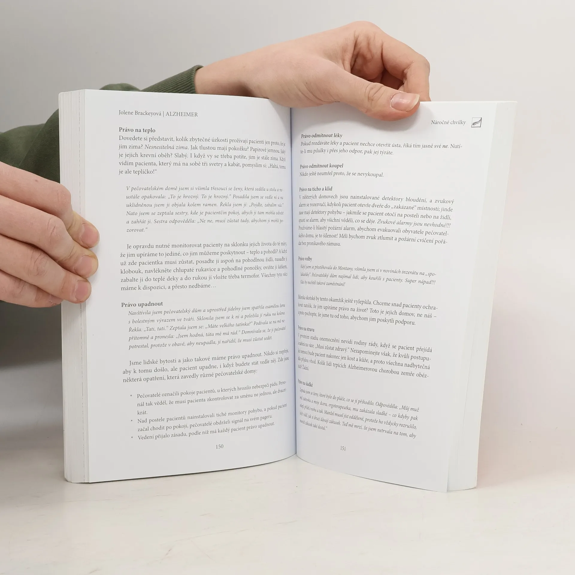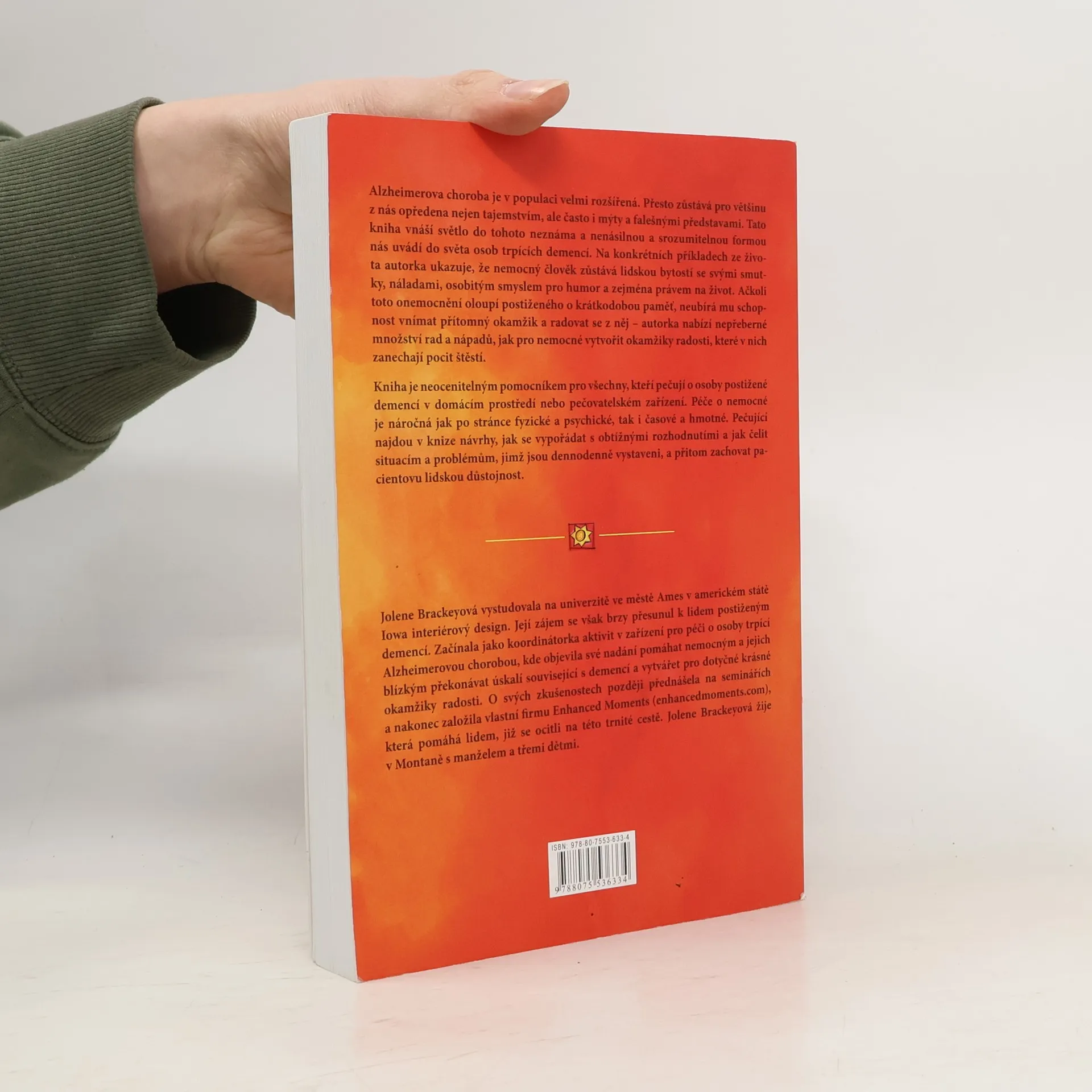 Kniha je neocenitelným pomocníkem pro všechny, kteří pečují o osoby postižené demencí v domácím prostředí nebo pečovatelském zařízení. Péče o nemocné je náročná jak po stránce fyzické a psychické, tak i časové a hmotné. Pečující najdou v knize návrhy, jak se vypořádat s obtížnými rozhodnutími a jak čelit situacím a problémům, jimž jsou dennodenně vystaveni, a přitom zachovat pacientovu lidskou důstojnost.