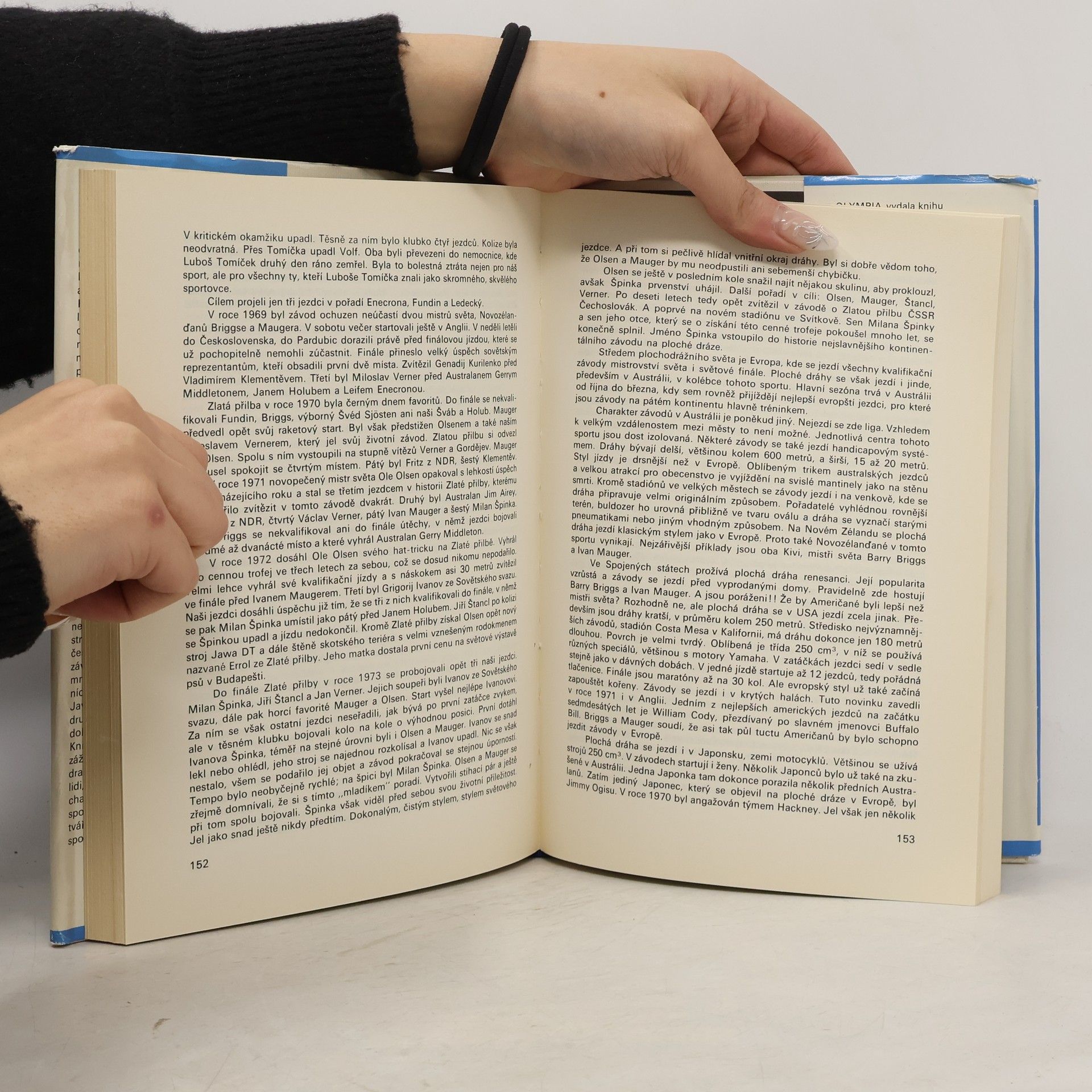 Podtitul: Kniha o motocyklovém sportu V poutavě psané knížce zpracovává autorská dvojice devadesátiletou historii motocyklového sportu. Představuje nejen vynikající postavy světového i československého motocyklového sportu, ale po zásluze oceňuje i práci konstruktérů a dělníků, kteříse podíleli na vývoji motocyklu. Provází jednotlivými závodními disciplínami a přibližuje neopakovatelnou atmosféru velkých mezinárodních motocyklových závodů. Vyprávění uzavírají přehledy vítězů hlavních závodů.