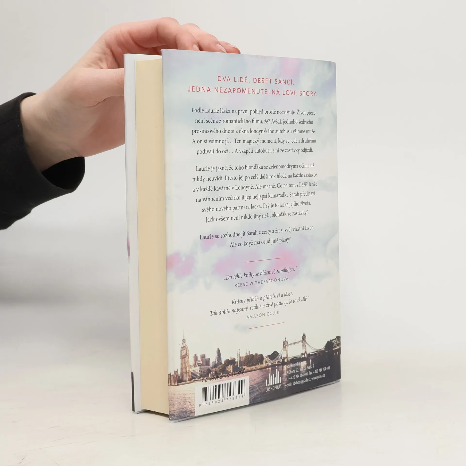 Laurie si je jistá, že člověk se na první pohled zamilovat prostě nemůže. Život přece není scéna z romantického filmu, že? Ale jednoho šedivého prosincového dne si z okna londýnského autobusu všimne muže. A on si všimne jí... Ten magický moment, kdy se jeden druhému podívají do očí… A vzápětí autobus i s Laurie ze zastávky odjíždí. Je jí jasné, že toho blonďáka se zelenomodrýma očima už nikdy neuvidí. Přesto jej po celý další rok hledá na každé zastávce a v každé kavárně v Londýně. Ale marně. Co na tom záleží? Jenže na vánočním večírku jí její nejlepší kamarádka Sarah představí svého nového partnera Jacka. Prý je to láska jejího života. Jack ovšem není nikdo jiný než „blonďák ze zastávky“. Laurie se rozhodne jít Sarah z cesty a žít si svůj vlastní život. Ale co když má osud jiné plány? Následuje deset let plných přátelství, lásky, zlomených srdcí, promarněných příležitostí a nečekaných rozhodnutí. Osud si s Laurie, Sarah i Jackem zahrává a vede je po klikatých cestičkách, které však nakonec možná povedou ke štěstí.