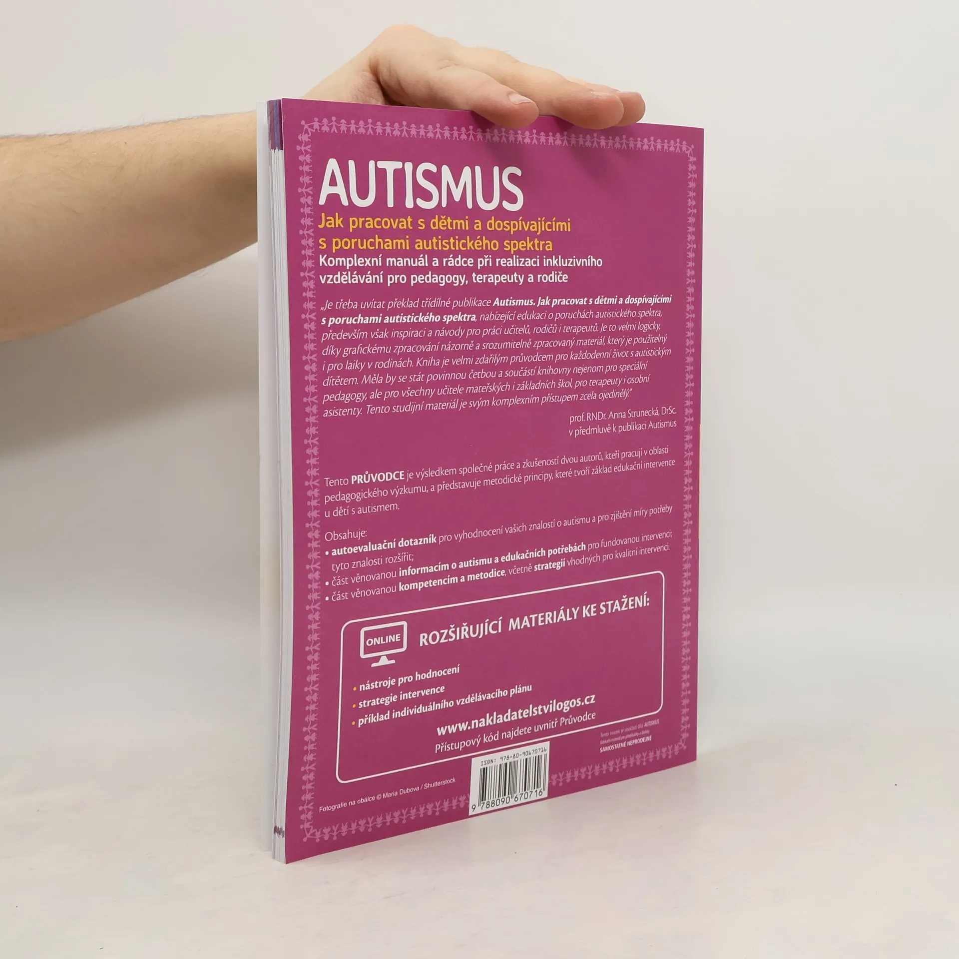 Manuál a rádce při realizaci inkluzivního vzdělávání pro pedagogy v mateřských a základních školách, pro terapeuty a rodiče dětí s autismem. Toto komplexní zpracování problematiky autismu a propojení spolupráce učitele, rodiny a terapeuta je na našem knižním trhu ojedinělým počinem. Publikace je rozdělena do tří knih. V teoretické části Průvodce jsou shrnuty dosavadní znalosti o poruchách autistického spektra a osvětleny metodologické principy, které tvoří základ edukační intervence, a také různé aspekty dětí s autismem. Navazující Pracovní knihy 1 a 2 nabízejí bohatou škálu praktických materiálů rozdělených do oblastí potřebné intervence. Samotný autismus vysvětluje publikace dopodrobna a zdařile s využitím mnoha konkrétních příkladů, navíc poskytuje úplný návod k tomu, jak v zapojení dítěte s autismem do běžného vzdělávacího procesu postupovat. Kniha je určena především pedagogům, nicméně bude neocenitelným zdrojem materiálů i pro psychiatry, psychology či speciální pedagogy, stejně jako pro samotné rodiče autistických dětí, kteří se často stávají v přístupu ke svému dítěti odborníky nejkompetentnějšími.