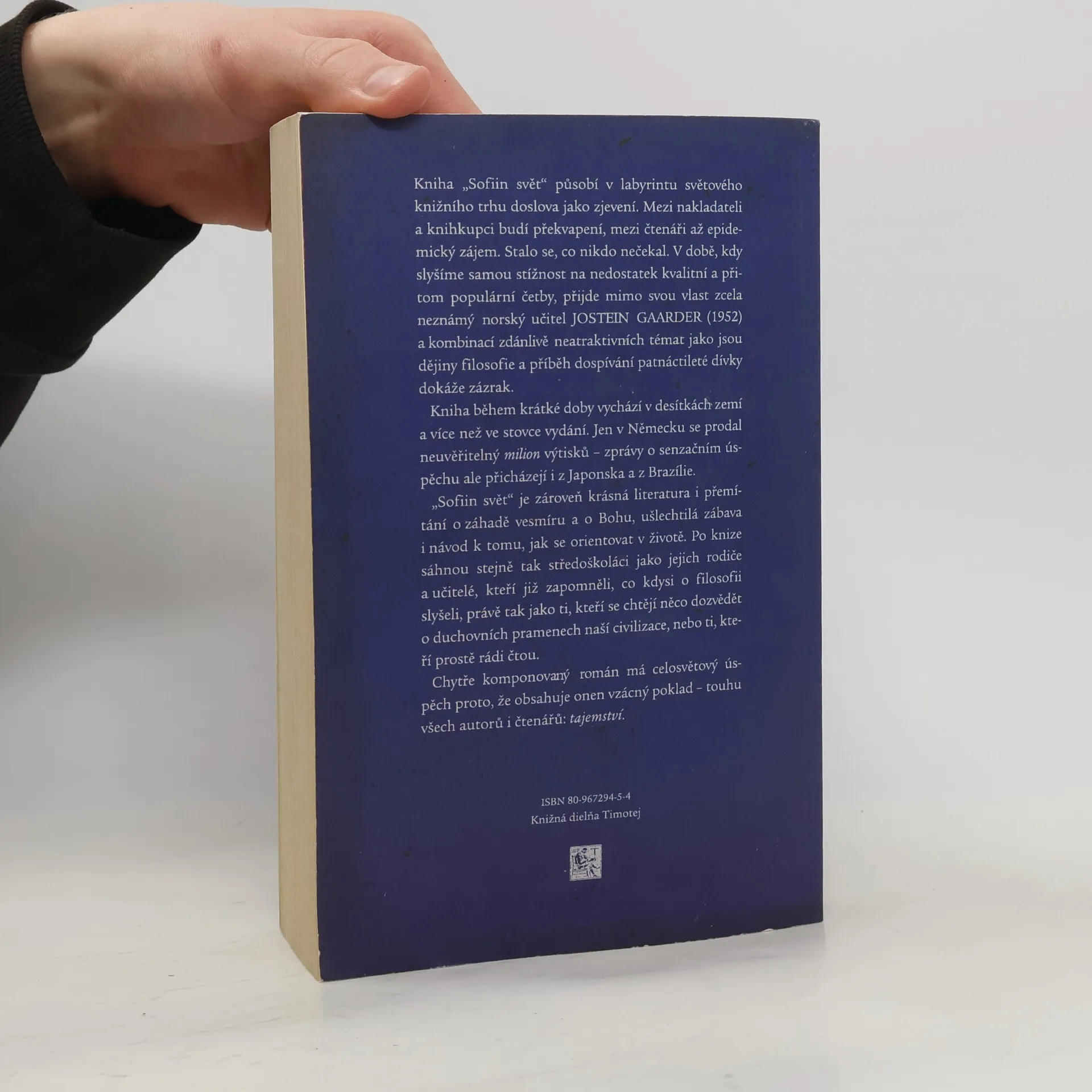 Román o dějinách filosofie Norský učitel kombinací zdánlivě neatraktivních témat, jako jsou dějiny filosofie a příběh dospívání patnáctileté dívky, vytvořil knížku, která slaví mezi čtenáři neuvěřitelný úspěch. V roce 1995 se stala nejprodávanější knihou na světě.