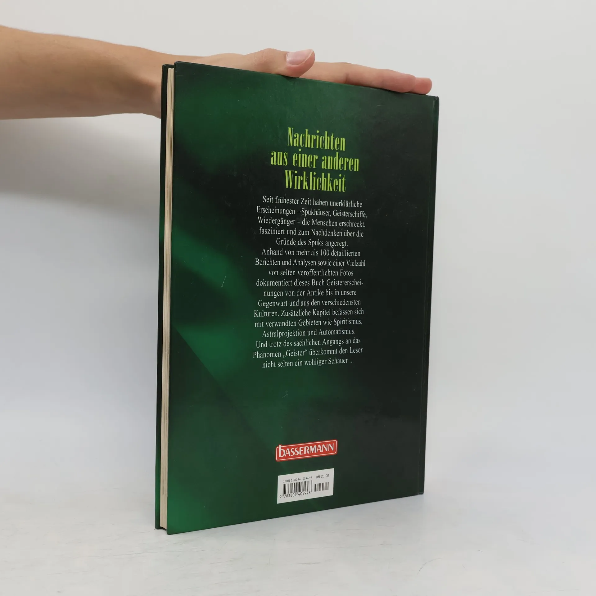 Kommentierte Berichte zu Erscheinungen von Poltergeistern, Gespenstern, von Wieder- und Doppelgängern der letzten 2000 Jahre. Der Band beginnt mit der Erscheinung von En-Dor (1. Buch Samuel), der Befragung eines Totengeistes durch König Saul. Die feinsinnigen Erläuterungen des Autors, die auch zwischen den Zeilen Aufschlüsse bieten, enthalten mitunter Ergebnisse von Nachforschungen, die den jeweiligen Fall relativieren oder als bloße Erfindung entlarven. Im Anhang u.a. ein theoretischer Beitrag zum Spiritismus mit Mutmaßungen zu paranormalen Wahrnehmungen mittels der Telepathie.
