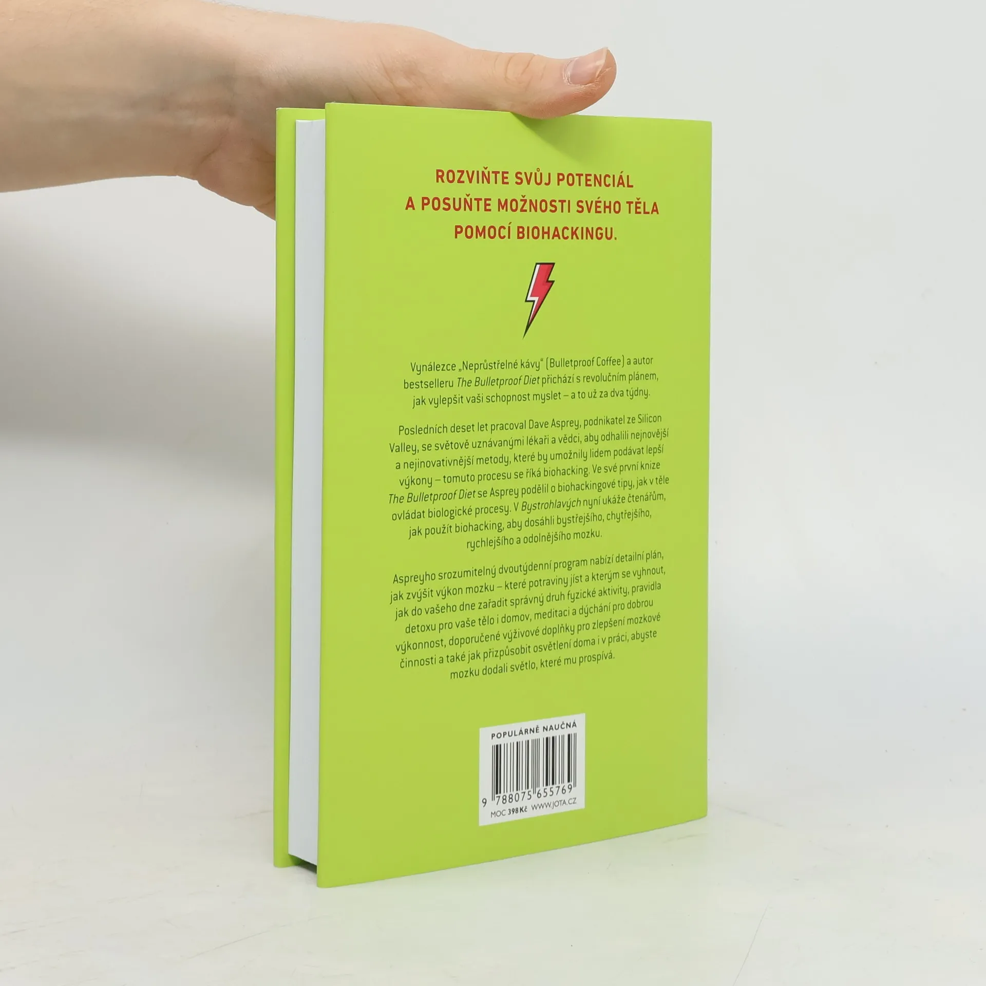 Představte si, že vaše mysl funguje tak jasně a bystře, že – pravděpodobně poprvé v životě – uděláte více práce v kratším čase. Co kdyby vám najednou šly ty nejtěžší věci mnohem jednodušeji? Co kdybyste si byli stoprocentně jistí svou inteligencí a už nikdy nebyli ti, kteří prostě nejsou dost chytří a nemůžou si vzpomenout na něco důležitého. Jak byste se chovali k lidem, kdyby vaše změny nálad, vznětlivost a chutě, které narušují váš den, jednoduše zmizely? V Bystrohlavých nám Asprey ukáže, že je tohle všechno – a ještě víc – možné. Zjistíte, že zavedením jednoduchých změn v životním stylu (neboli „hacků“) můžete využít toho, jak funguje struktura mozku, a naučíte se posunout svou mentální výkonnost ještě dál. Lepší mozek a šťastnější, jednodušší a produktivnější život už jsou na dosah. Buďte Bystrohlaví.
