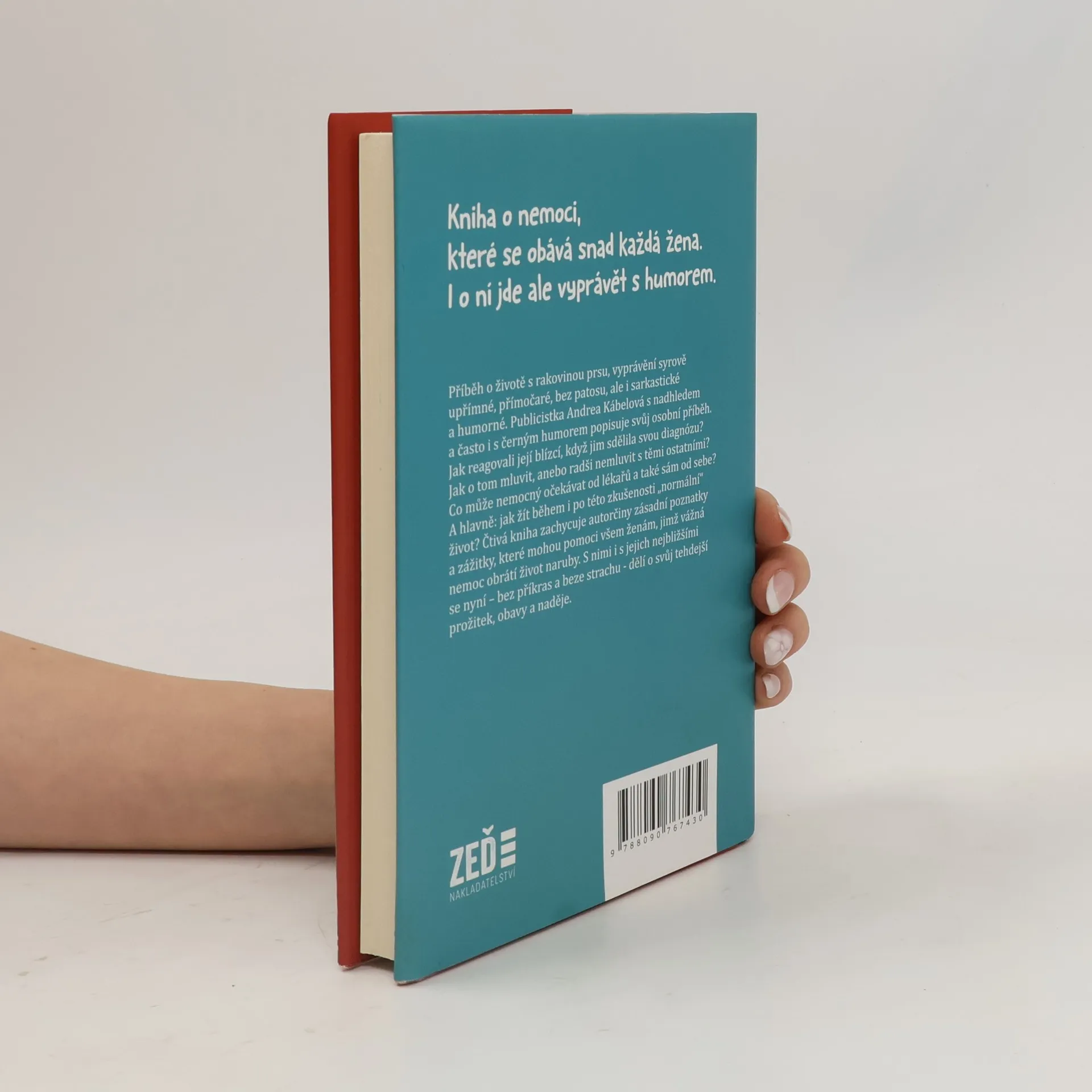 Kniha o nemoci, které se obává snad každá žena. I o ní jde ale vyprávět s humorem. Příběh o životě s rakovinou prsu, vyprávění syrově upřímné, přímočaré, bez patosu, ale i sarkastické a vtipné. Taková je kniha publicistky Andrey Kábelové. S nadhledem a často i s černým humorem v ní popisuje svůj osobní příběh. Jak reagovali její blízcí, když jim sdělila svou diagnózu? Jak o tom mluvit, anebo radši nemluvit s těmi ostatními? Co může nemocný očekávat od lékařů a také sám od sebe? A hlavně: jak žít během i po této zkušenosti „normální“ život? Čtivá kniha zachycuje autorčiny zásadní poznatky a zážitky, které mohou pomoci všem ženám, jimž vážná nemoc obrátí život naruby. S nimi i s jejich nejbližšími se Andrea Kábelová nyní – bez příkras a beze strachu – dělí o svůj tehdejší prožitek, obavy a naděje.