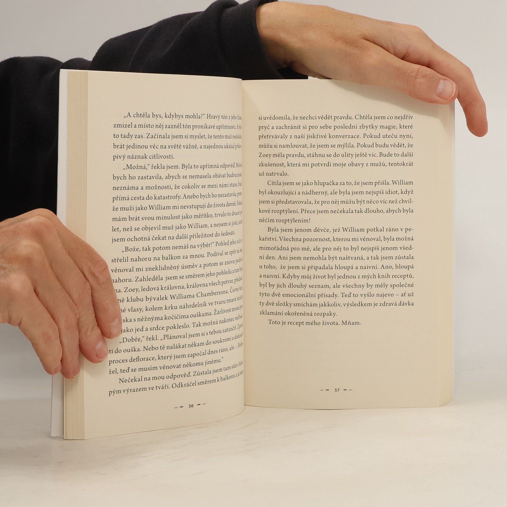 Jak jsem ji potkal? Gentleman se přece nechlubí. Naštěstí nejsem gentleman. Nejdřív jsem jí zaplatil za věneček (tím myslím zákusek, ale o to nejde), vzápětí jsem ji defloroval. A potom? Nechal jsem jí vizitku a odešel odtamtud jako král. Jo, dalo by se říct, že jsme si vážně padli do oka. Jak jsem potkala Williama? Přišel ke mně do pekárny, koupil si věneček, ukradl květiny z vázy – pořád netuším, co s nimi chtěl dělat – a nechal mi svou vizitku. Než vám řeknu, jak jsem s ní naložila, měla bych něco vyjasnit: William mi vstoupil do života v ten nejhorší možný okamžik. Pekařství krachovalo, můj vlezlý bývalý mě odmítal nechat na pokoji. A jen tak mimochodem jsem byla pětadvacetiletá panna, což mi mí přátelé neustále předhazovali. Vyřešit poslední z mých problémů s Williamovou pomocí by bylo jako zabít mouchu kladivem – přehnané, ale úžasné. William byl neuvěřitelně přitažlivý – byl sexy přesně tím způsobem, který ženské nutí dělat pitomé věci, a já kvůli tomu myslela na úplné šílenosti. Napadlo mě, že kdyby ji zabil William se svými nemožně vypracovanými svaly, té mouše by to ani nevadilo – a já na tom byla stejně. A tak jsem mu zavolala. Možná jsem věděla, že to není dobrý nápad. Možná jsem se řítila vstříc katastrofě. Věděla jsem, že si koleduju o potíže, když se do telefonu zasmál tím svým hlubokým sexy hlasem a řekl: Pořád mám chuť na ten váš věneček. Nabízíte donáškovou službu?