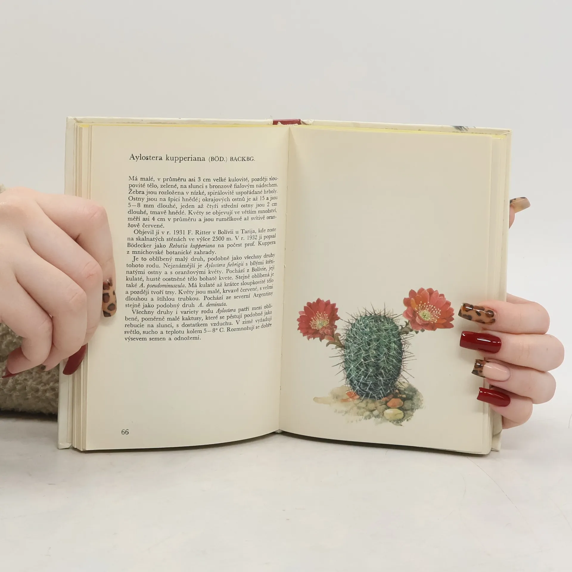 Sběratelům kaktusů a sukulentů je určena knížka, která poučí i začátečníka o všem, co je třeba vědět o pěstování kaktusů. Historické a zeměpisné poznámky dávají zajímavý výklad o domovině kaktusů a o počátcích jejich pěstovánív jiných končinách světa. Velký oddíl publikace tvoří obrazová část, ve které je rostlina nejen přesně vyobrazena, ale i dokonale popsána, případně jsou uvedeny její variety, hovoří se o její domovině a jménu, a sběratelé se dovědí, kde a jakým způsobem je nejvhodnější kaktus nebo sukulent pěstovat.