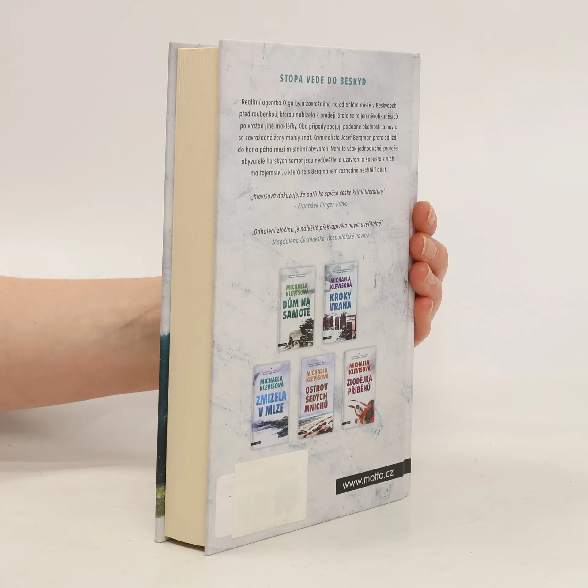 Nová detektivka Michaely Klevisové zavádí čtenáře do idylické krajiny Beskyd, kde na horách ještě žijí lidé podobně prostě a v souladu s přírodou jako generace jejich předků. I sem ale vstoupil byznys, který staré roubenky mění na hotely a penziony a vše živé v lesích na lovnou zvěř. Realitní agentka Olga byla zavražděna na odlehlém místě vysoko v horách před roubenkou, kterou nabízela k prodeji. Stalo se to jen několik týdnů po vraždě makléřky v Praze. Oba případy spojují podobné okolnosti, a navíc se zavražděné ženy mohly znát. Kriminalista Josef Bergman proto odjíždí do hor a pátrá mezi místními obyvateli. Není to však jednoduché, protože obyvatelé horských samot jsou nedůvěřiví a uzavření a spousta z nich má svá tajemství, o která se s Bergmanem rozhodně dělit nechtějí.