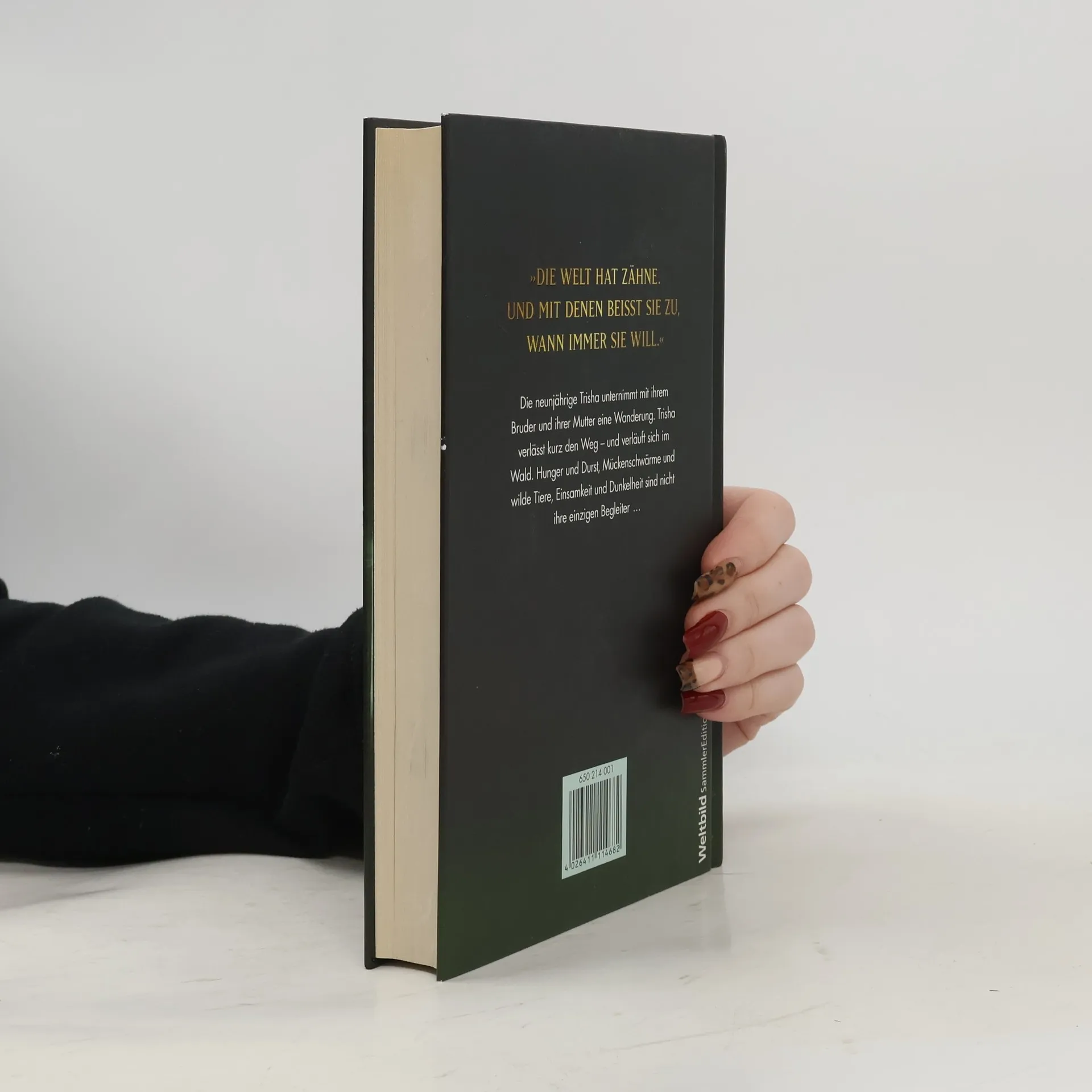 »Die Welt hat Zähne. Und mit denen beißt sie zu, wann immer sie will.« Die neunjährige Trisha unternimmt mit ihrem Bruder und ihrer Mutter eine Wanderung. Trisha verlässt kurz den Weg - und verläuft sich im Wald. Sie ist allein. Noch niemand hat bemerkt, dass sie verschwunden ist. Keiner ist da, der sie beschützen kann - vor Hunger und Durst, Mückenschwärmen und wilden Tieren, Einsamkeit und Dunkelheit. Aber vor allem nicht vor dem, was sich in den Wäldern aufgemacht hat, die Neunjährige heimzusuchen...