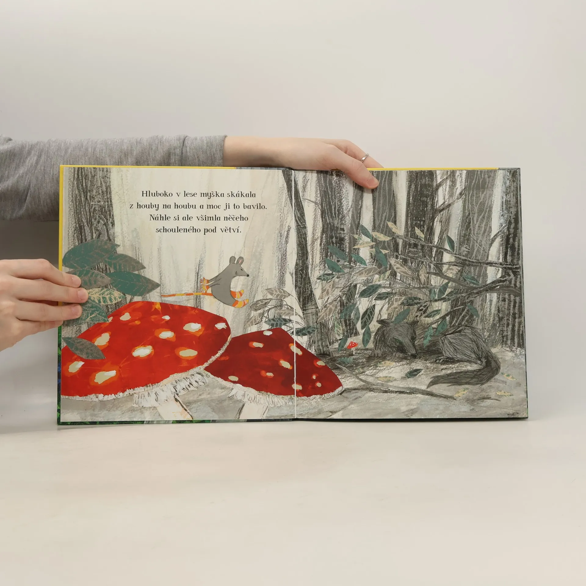Jednoho rána se myška rozhodla, že půjde do lesa na průzkum. „Ničeho se neleknu,“ řekla ostatním zvířátkům. A opravdu, ani vlk, ani medvěd, a dokonce ani los ji nevystrašili. Jak to ale dopadlo, když v lesním domečku našla malé, bílé, chlupaté koťátko?