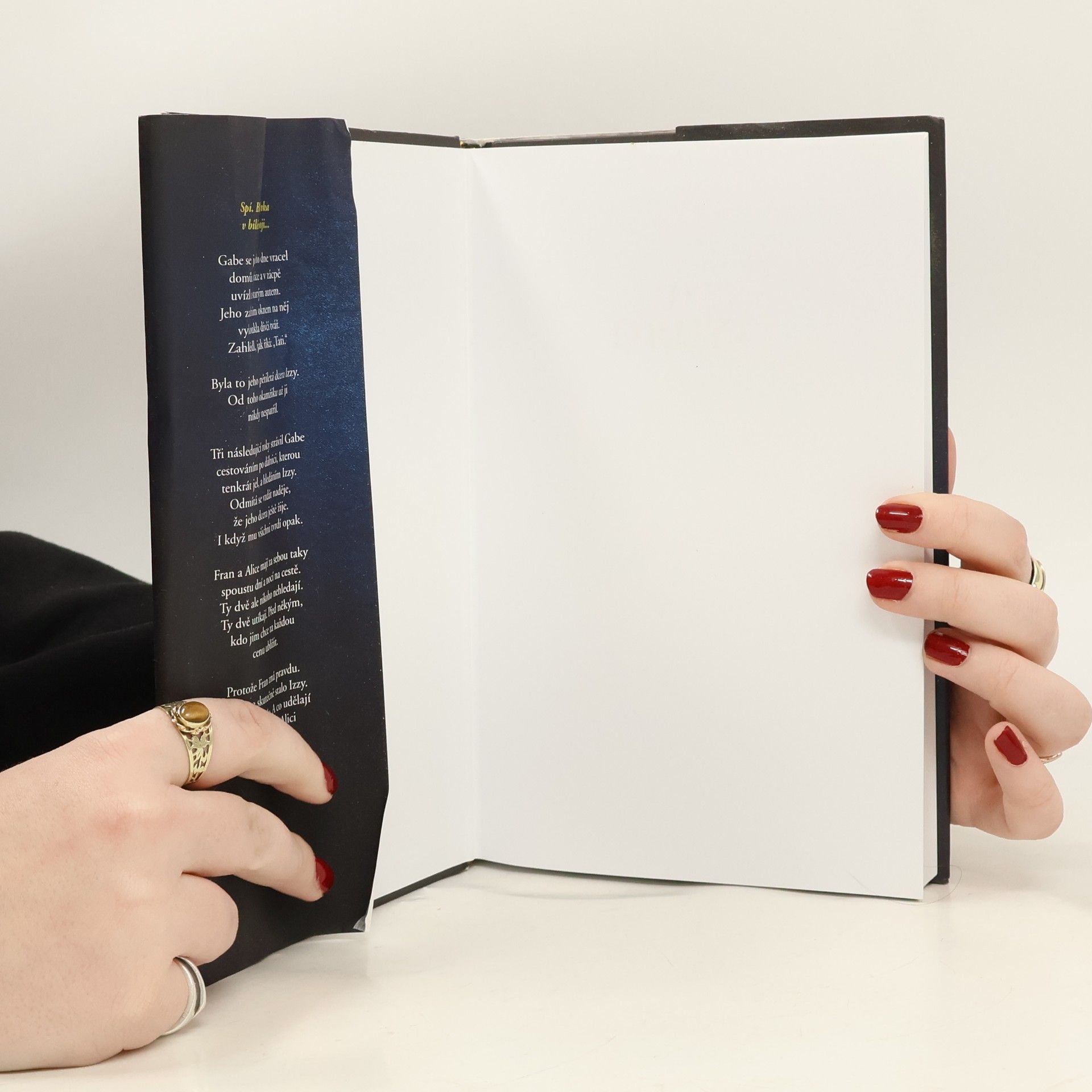 Mrazivý. Děsivý. Neodložitelný. Nový psychothriller autorky bestsellerů Kříďák a Jáma. Gabe se jednoho dne vracel autem domů z práce a v zácpě uvízl za starým autem. Jeho zadním oknem na něj vykoukla dívčí tvář. Zahlédl, jak říká: „Tati.“ Byla to jeho pětiletá dcera Izzy. Od toho okamžiku už ji nikdy nespatřil. Tři následující roky strávil Gabe cestováním po dálnici, kterou tenkrát jel, a hledáním Izzy. Odmítá se vzdát naděje, že ještě žije. I když mu všichni tvrdí opak. Fran a Alice mají za sebou taky spoustu dní a nocí na cestě. Ty dvě ale nikoho nehledají. Ty dvě utíkají. Před někým, kdo jim chce za každou cenu ublížit. Protože Fran zná pravdu. Ví, co se skutečně stalo Izzy. Kdo za to může. A co udělají ti druzí, když ji a Alici dostihnou...