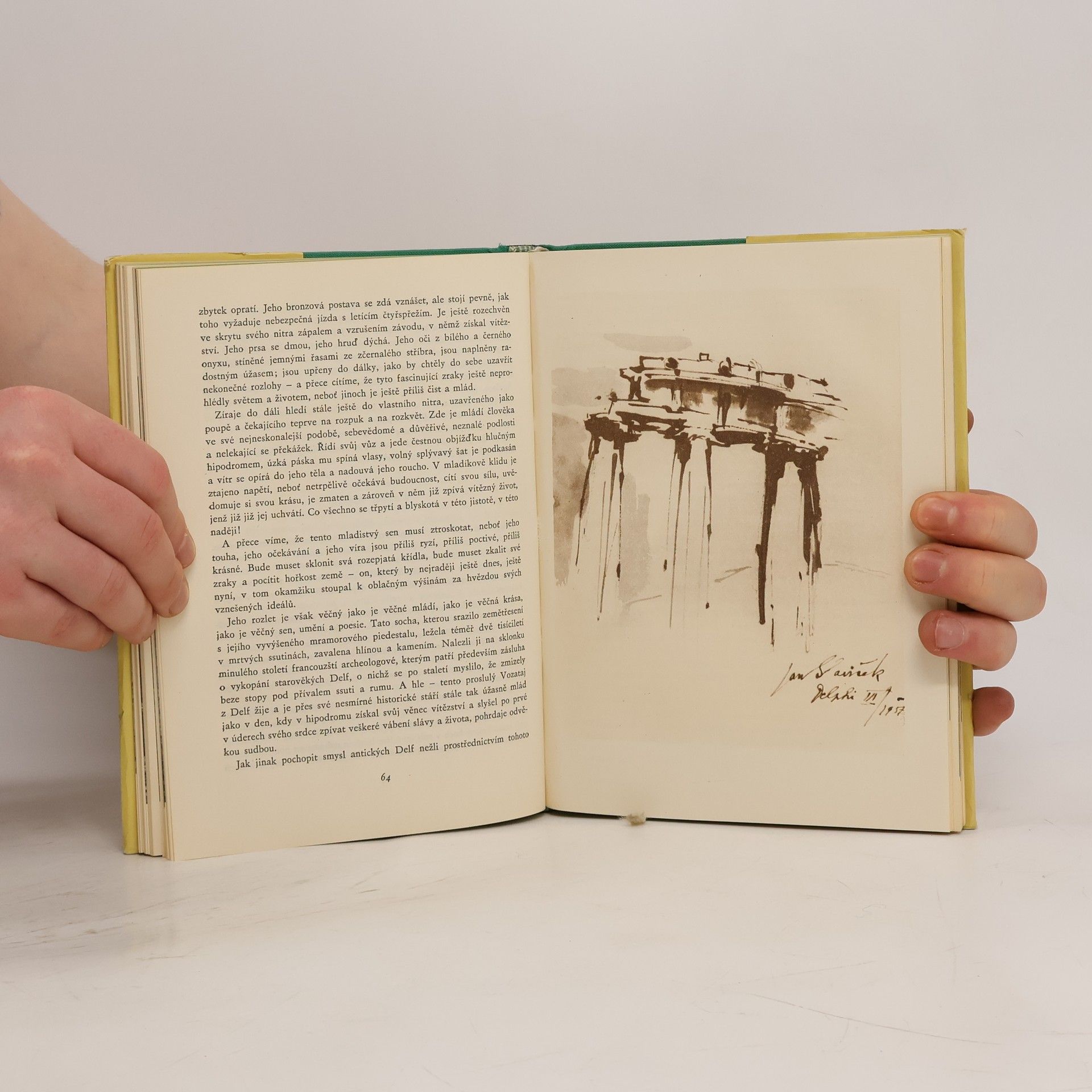 Na tuto knihu putování po starém Řecku se rozhodně nemůžeme dívat na běžný cestopis. Psát cestopis však nebylo ani autorovým úmyslem. Celá kniha totiž vznikla z velikého okouzlení oním starým Řeckem, zemí dávných antických bohů, která byla kolébkou evropské civilizace a kultury, která se nám až do dnešních časů zachovala jako stará relikvie. Dnes zapomenutá tklivá místa, byla zasunutá pod přívalem popela a ssuti, jež známe jen podle jména z knih nebo ze školních účebnic, bývala kdysy před sty lety a tisíci lety nejživějšími středisky lidského žití, takovými, jakými jsou dnes New York, Moskva, Londýn či Paříž. Ale přesto, že všechny ty krajiny, Olympia a Epidauros, či antická Sparta a Korint jsou místa dávno opuštěná, rozkotaná v ruiny a zpustošená válkami i staletími, nepůsobí nijak mrtvě. Z fragmentů soch a sloupů, ze zborcených chrámů a svatyň hovoří stále někdejší živá a dramatická minulost, doba vrcholného rozmachu antiky, kdysy na starověkých agorách vyměňovali své názory filozofové a rétoři, kdy prostranstvími, lemovanými sloupovým a piniemi, zněly písně potulných rapsodů a kitharodů, kdy stadia hřměla na oslavu olympijským vítězům, kdy se zde politicky i kulturně vyžíval čilý a vyspělý národ. Místa, na nichž se zrodila evropská kultura, místa, která nám nyní po staletí odhalují výzkumy a objevy archeologů, musí nezbytně každého návštěvníka okouzlit a nadchnout. A toto okouzlení a nadšení dýchá ze stránek této knížky.