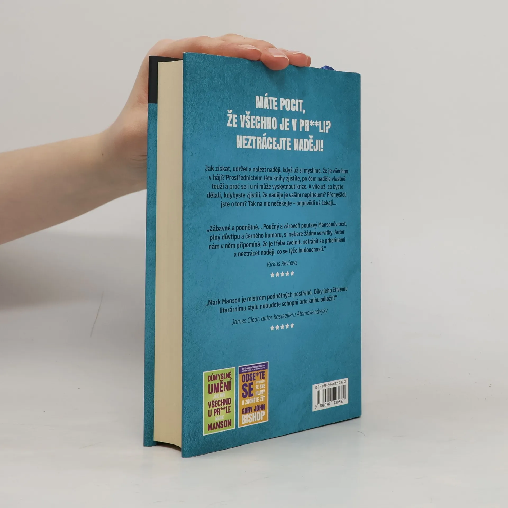 Máte problém ráno vstát z postele a večer naopak sůvíte dlouho do noci a jen tupě zíráte na televizi, kde vás tak maximálně dráždí nesmyslné reklamy? Nedaří se vám dosáhnout vytoužených snů? Honíte se za štěstím jako pes za svým ocasem? Nechápete, proč zrovna vy musíte mít neustálé konflikty s narcistickým šéfem? Máte se jako prase v žitě, ale i přesto nejste spokojeni? Neumíte jednat se svým dospělým puberťákem nebo dětinským protějškem? Neztrácejte naději. Přichází kniha, která se Vám pokusí odpovědět na zapeklité otázky. Ale slovy autora: „Neberte mě příliš vážně.“ Autor Mark Manson se ve svém pokračování knihy Důmyslné umění, jak mít všechno u prdele zaměřuje převážně na naději a vše, co se točí kolem ní. Jak ji získat, udržet a najít, když už si myslíme, že je všechno v háji. Zjistíte, po čem naděje vlastně touží a proč se i u ní může vyskytnout krize. A víte už, co byste dělali, kdybyste zjistili, že naděje je vaším nepřítelem? Přemýšleli jste o tom? Tak teď všeho nechte – odpovědi už čekají…