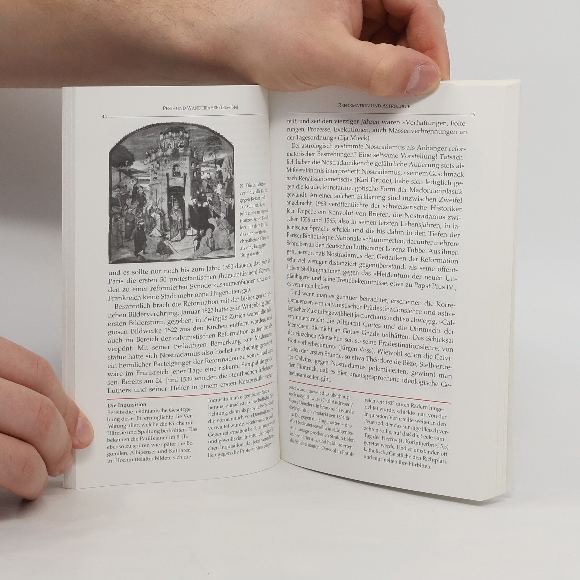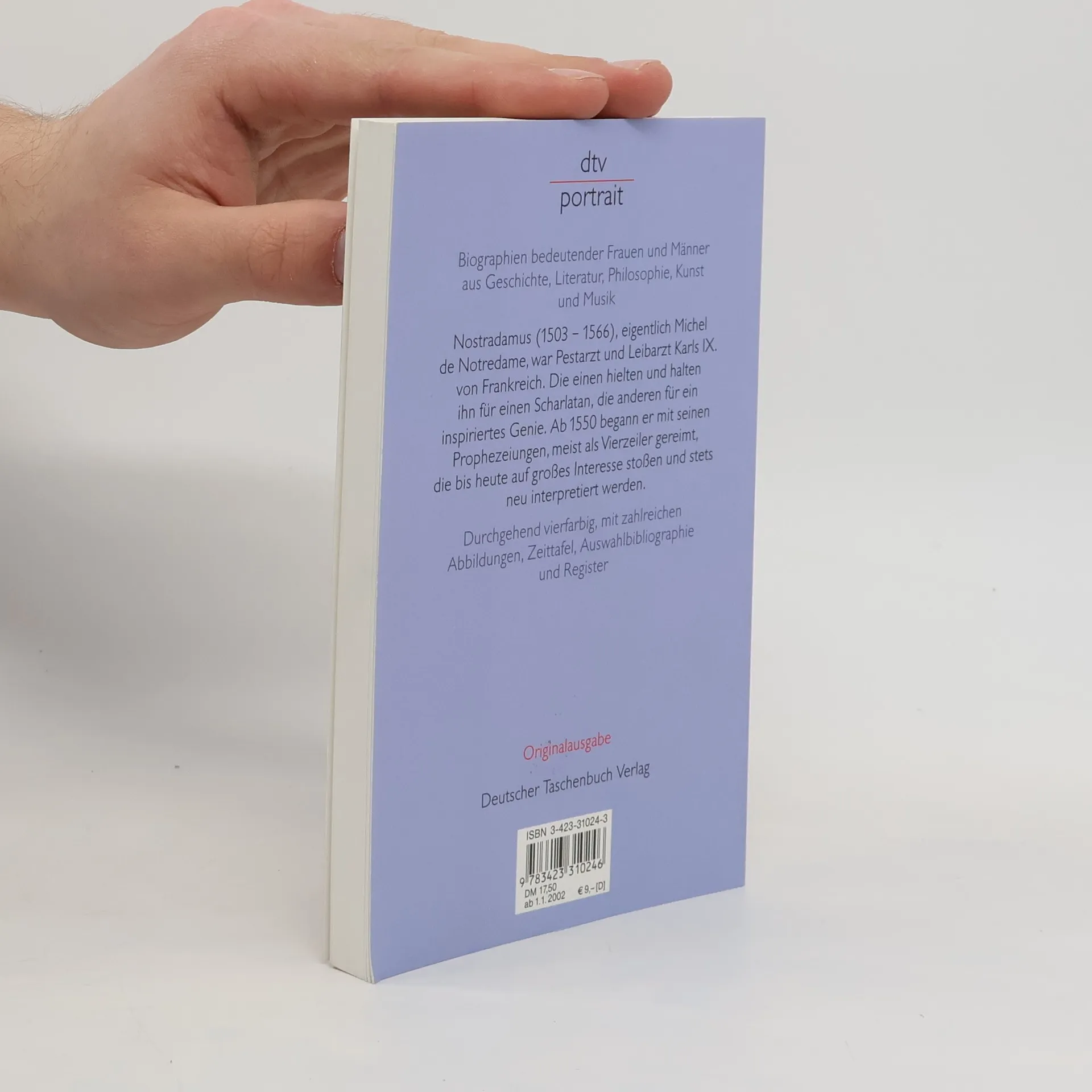 Nostradamus (1503 – 1566), eigentlich Michel de Notredame, war Pestarzt und schließlich ein Liebling des Hofes und Leibarzt Karls IX. von Frankreich. Die einen hielten und halten ihn für einen Scharlatan, die anderen für ein inspiriertes Genie. Die französischen Könige pilgerten noch im 17. Jahrhundert an sein Grab. Ab 1550 begann er mit seinen Prophezeiungen, meist als Vierzeiler gereimt, die bis heute auf großes Interesse stoßen und stets neu interpretiert werden.