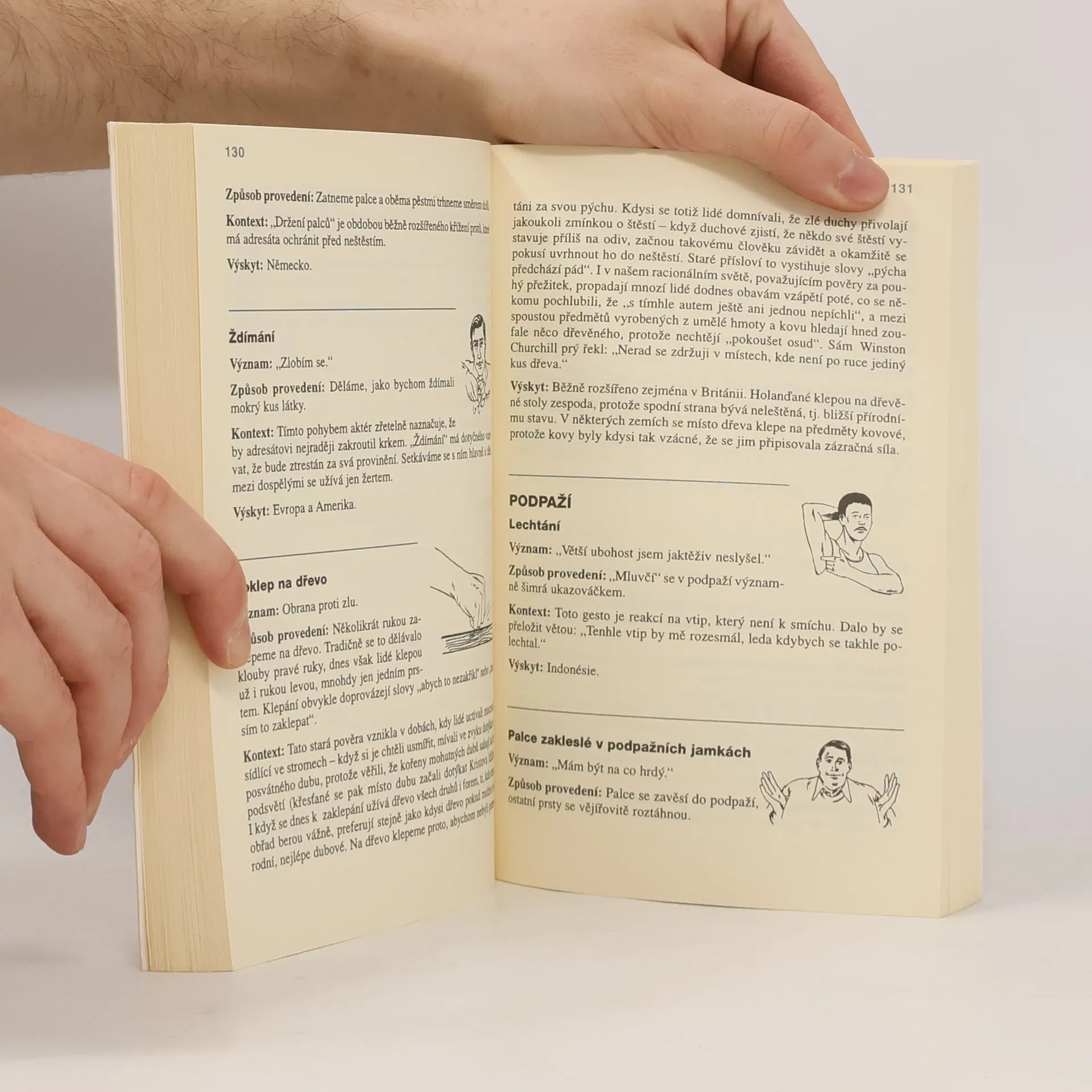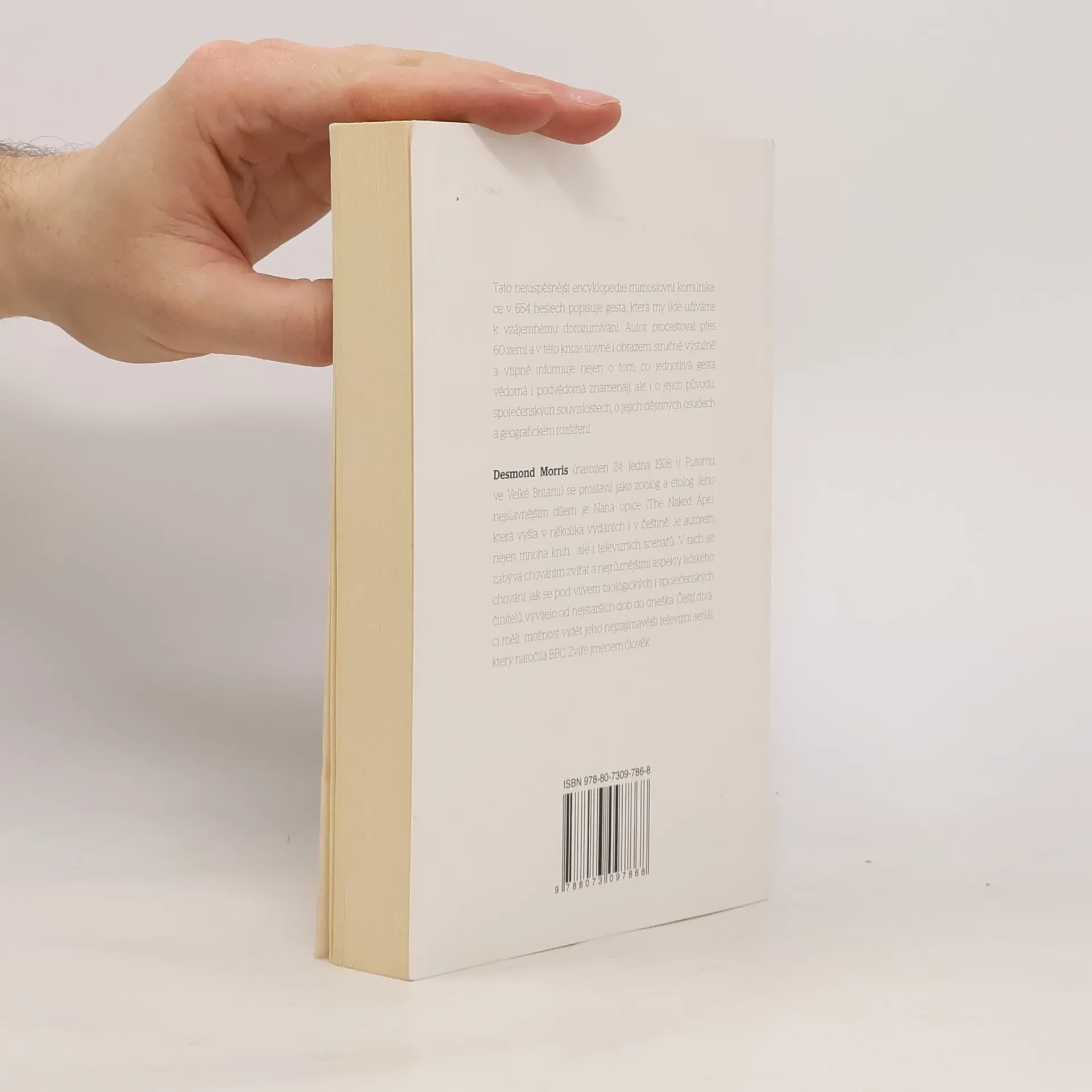 Tato nejúspěšnější encyklopedie mimoslovní komunikace v 654 heslech popisuje gesta, která my lidé používáme k vzájemnému dorozumívání. Autor procestoval přes 60 zemí a v této knize slovně i obrazem, stručně, výstižně a vtipně informuje nejen o tom, co jednotlivá gesta vědomá i podvědomá znamenají, ale i o jejich původu, společenských souvislostech, o jejich dějinných osudech a geografickém rozšíření.