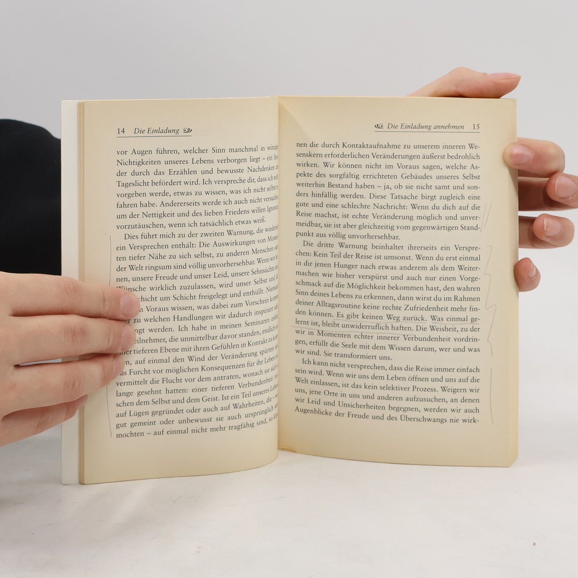 Seit Monaten macht das Prosagedicht „Die Einladung“ in den USA Furore. Endlich ist es auch den deutschen Lesern zugänglich. Oriah Mountain Dreamer verbindet ihre einzigartige Botschaft mit persönlichen Lebenserinnerungen. Voll mitreißender Darstellungskraft entwirft sie eine poetische Lebensphilosophie der Leidenschaft, ruft dazu auf, dieses Leben anzunehmen, sich dem Schmerz und dem Leiden zu öffnen und sich kompromißlos der Freude und Schönheit zuzuwenden.