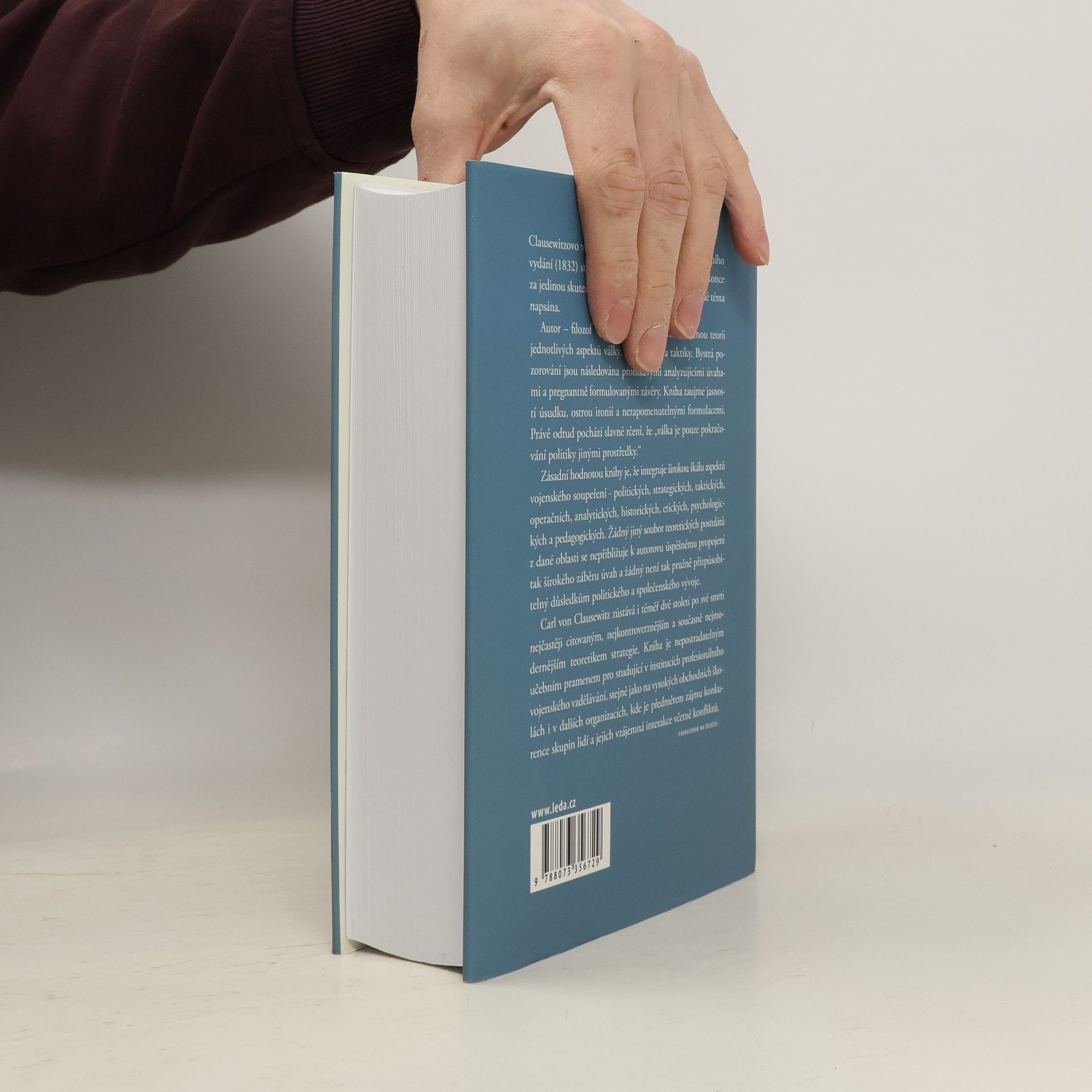 SLAVNÁ KOMPLEXNÍ INSPIRACE VOJÁKŮ, POLITIKŮ, INTELEKTUÁLŮ, MANAŽERŮ A ORGANIZÁTORŮ Vrcholné dílo autora, filozofa vojenství, je považováno za jedinou skutečně velkou knihu na téma války. Předkládá obecnou teorii různých aspektů konfliktu, včetně strategie a taktiky, a obsahuje bystrá pozorování, pronikavé úvahy a jasně formulované závěry. Kniha se vyznačuje jasností úsudku, ironií a nezapomenutelnými formulacemi, včetně slavného rčení, že „válka je pokračování politiky jinými prostředky.“ Její zásadní hodnota spočívá v integraci širokého spektra aspektů vojenského soupeření - politických, strategických, taktických, operačních, historických, etických a psychologických. Carl von Clausewitz zůstává i po téměř dvou stoletích nejčastěji citovaným a nejmodernějším teoretikem strategie. Kniha je klíčovým učebním pramenem pro profesionální vojenské vzdělávání, obchodní školy a další organizace, kde se zkoumá konkurence a interakce mezi lidmi. Clausewitzův spis zásadně ovlivnil vojevůdce a vojenské myslitele, včetně teoretiků moderních zbraní a stratégů. Mnohé jeho úvahy se úspěšně aplikují v oblastech jako obchod, mezinárodní vztahy, politologie a dokonce i v oblasti umělé inteligence a počítačových her, kde se rovněž vyskytují konflikty velkých zájmů.