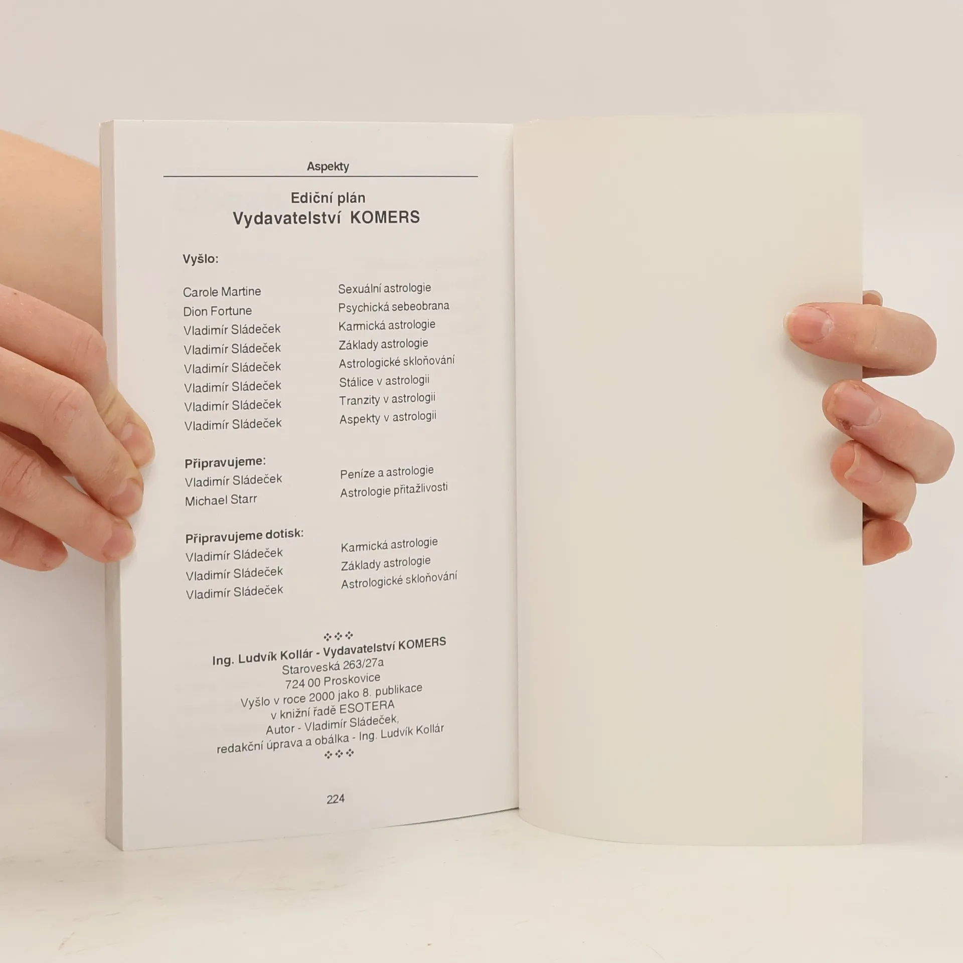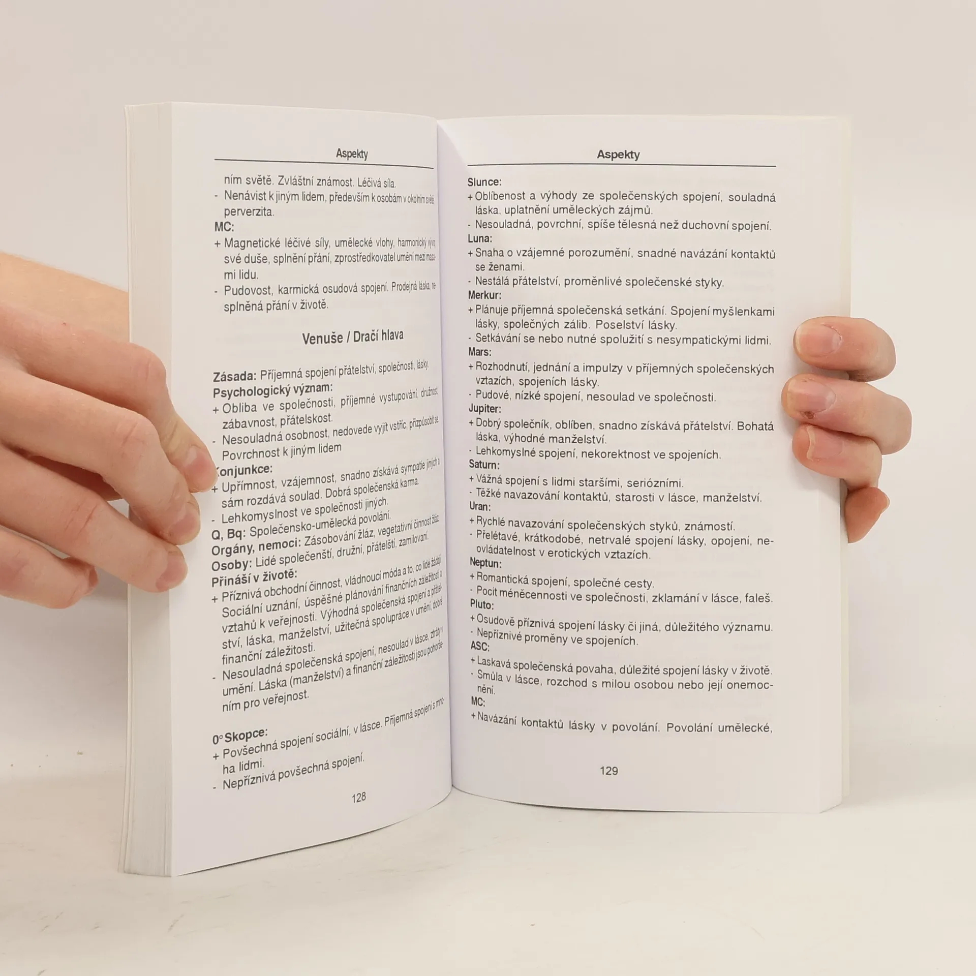 Anotace: výklad běžných i méně používaných aspektů - od konjunkcí, opozic a trigonů po stellia, draky či mystické obdélníky