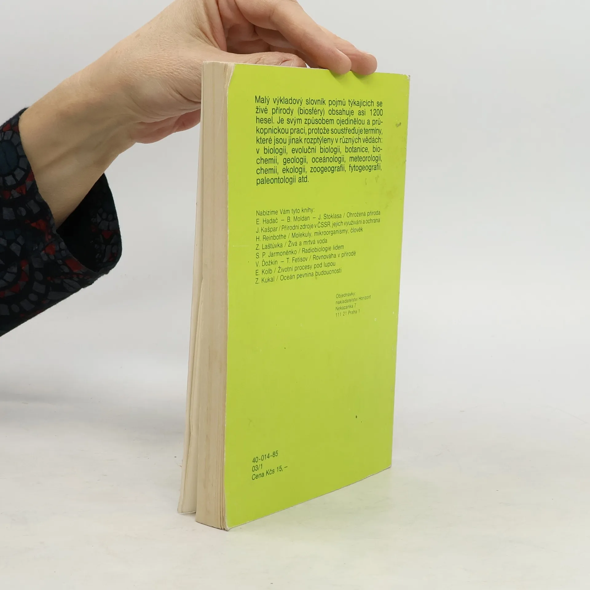 Malý výkladový slovník pojmů týkajících se živé přírody (biosféry) obsahuje asi 1200 hesel. Je svým způsobem ojedinělou a průkopnickou prací, protože soustřeďuje termíny, které jsou jinak rozptýleny v různých vědách: v biologii, evoluční biologii, botanice, biochemii, geologii, oceánologii, meteorologii, chemii, ekologii, zoogeografii, fytogeografii, paleontologii atd.