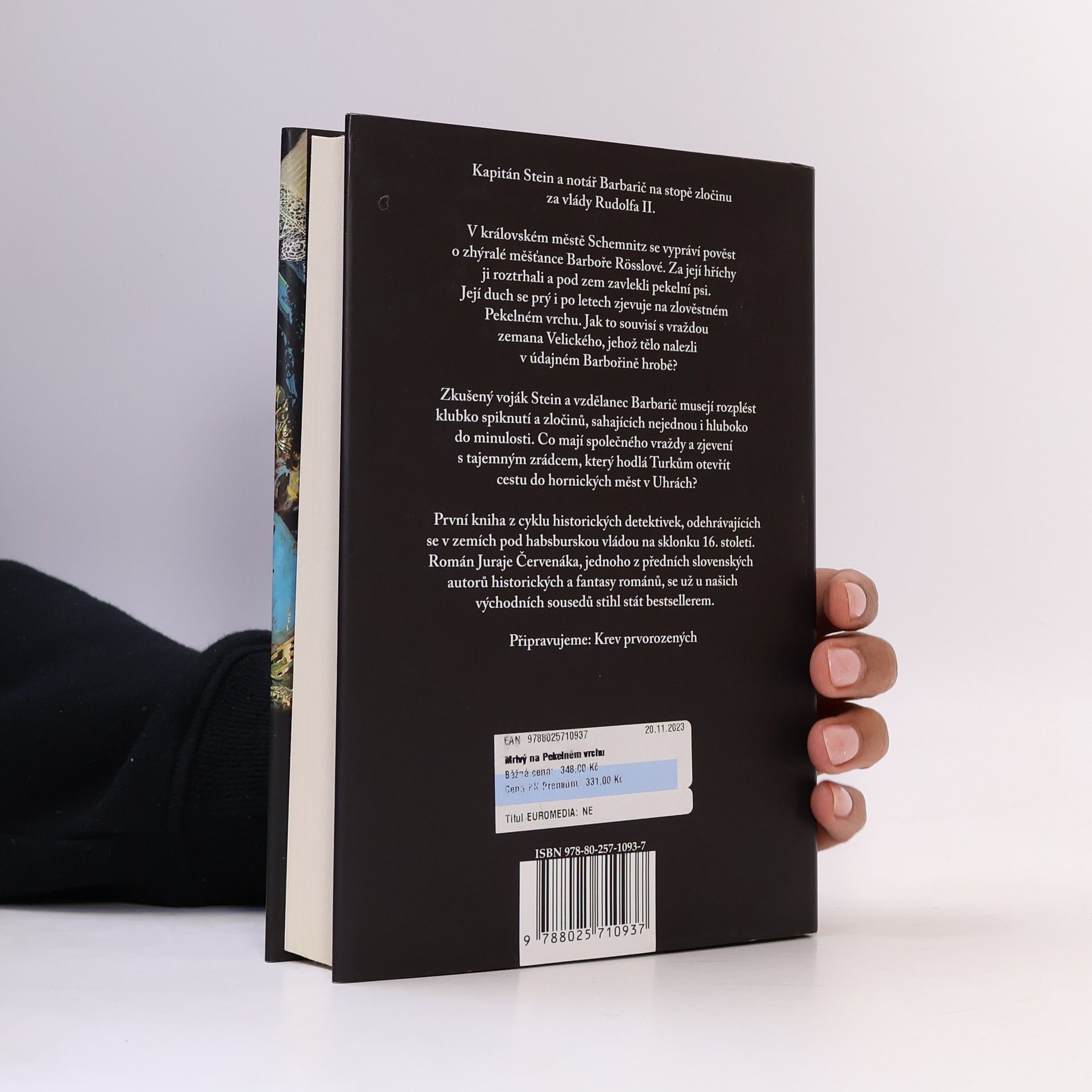 První díl ze série historických detektivek s kapitánem Steinem a notářem Barbaričem. Autorem je slavný slovenský spisovatel Juraj Červenák, známý především pro své fantasy knihy. Mrtvý na Pekelném vrchu vypráví příběh odehrávající se v Horních Uhrách v době tureckých nájezdů. Jádro tvoří dvojice jedinečných hlavních hrdinů - nebojácný a přímočarý Joachim Stein a hedonistický intelektuál Matěj Barbarič -, kteří se snaží přijít na kloub vraždě a vyřešit hrozící velezradu. Svižná a čtivá detektivka z 16. století, která vykresluje vrcholný středověk v syrové podobě. Román, který bezpochyby nadchne nejen milovníky historických detektivek, ale i kteréhokoli čtenáře majícího v oblibě pořádnou dávku akce a napětí.