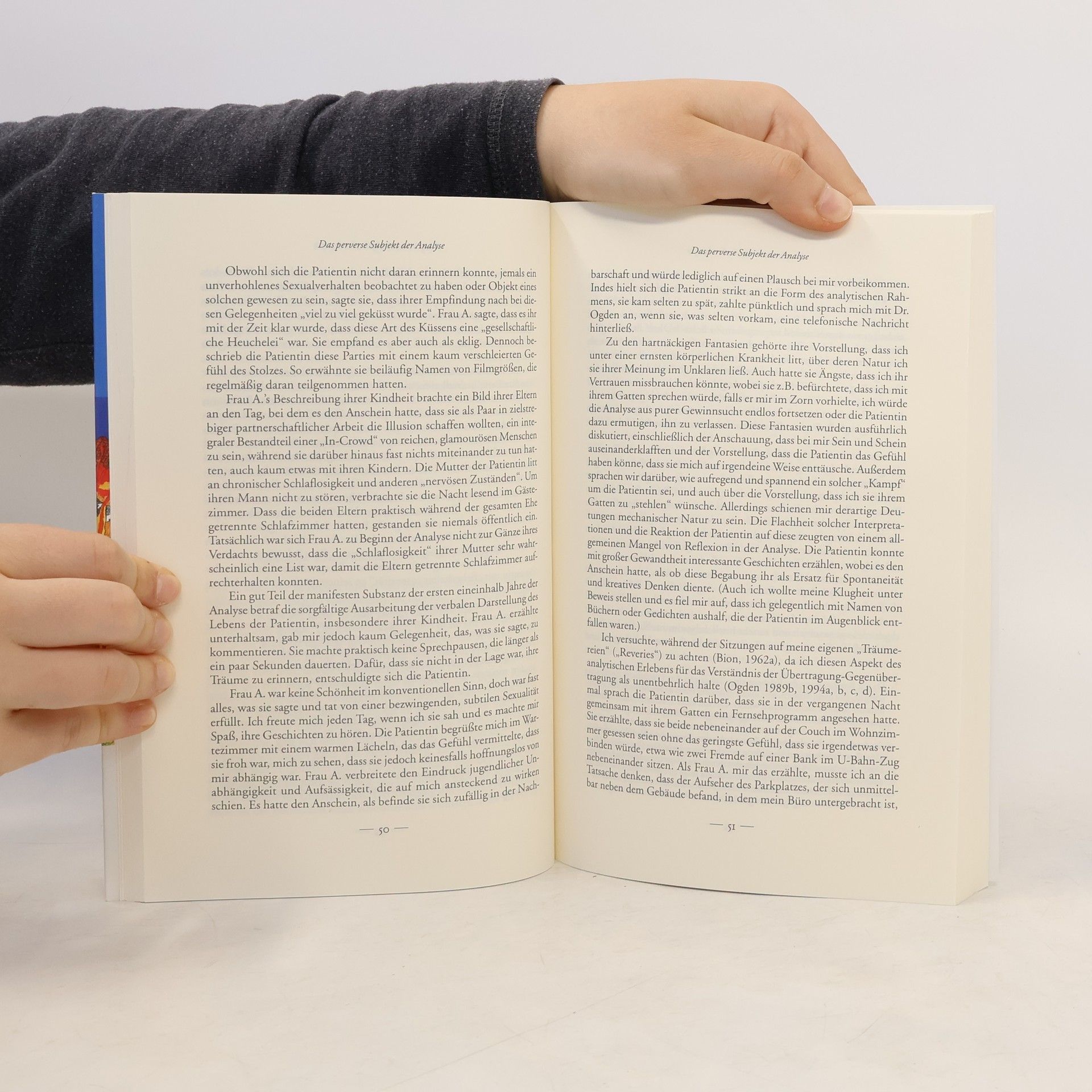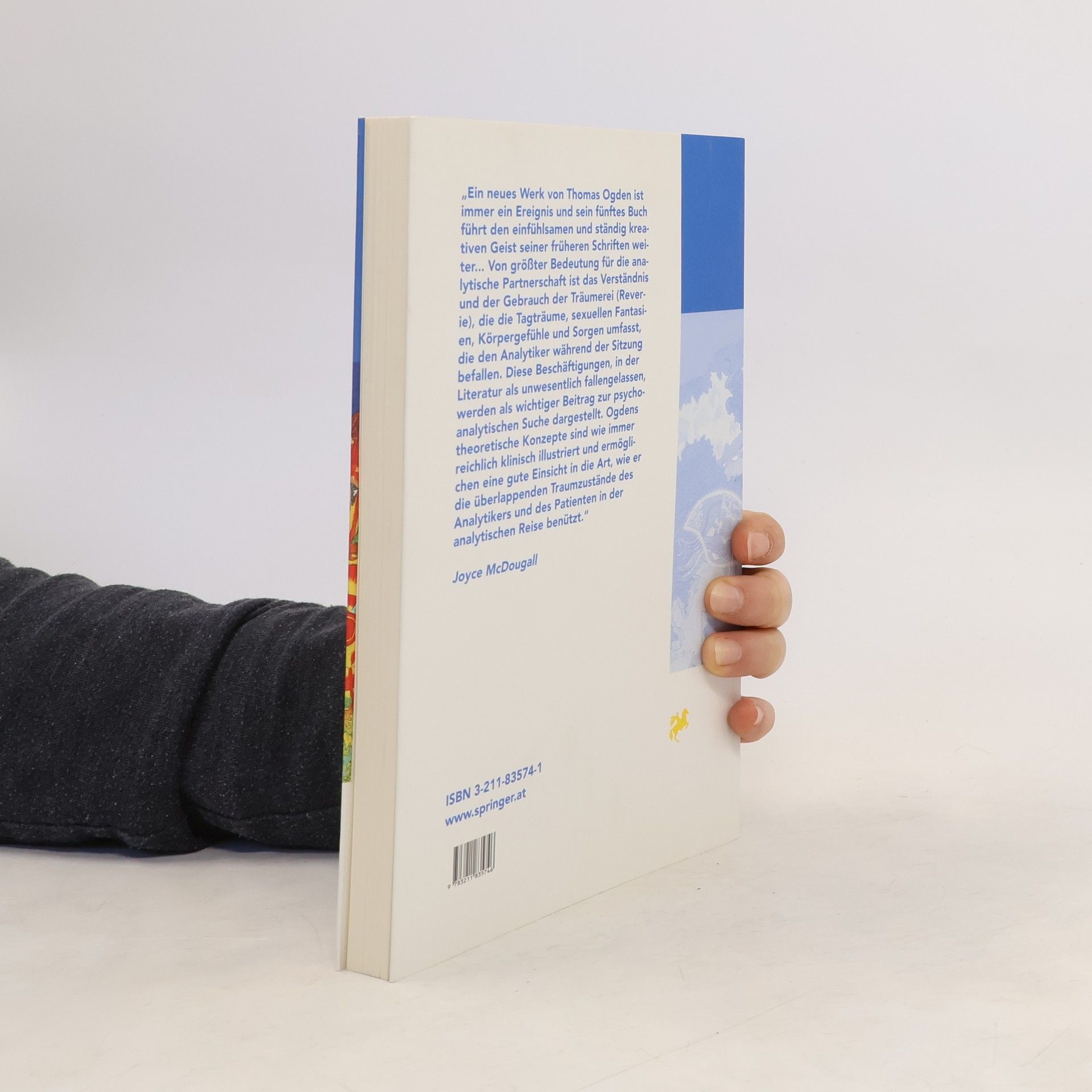 Stimmen zur amerikanischen Originalausgabe: „Einer der führenden psychoanalytischen Theoretiker unserer Zeit seziert die Grundkomponenten der psychoanalytischen Situation in einer solchen Weise, daß der Leser die Psychoanalyse nie mehr wieder auf die selbe Art betrachten wird. Er stellt neue Überlegungen an über die Verwendung der Couch, den technischen Zugang zur Traumdeutung, das Bedürfnis des Klienten und Analytikers nach Zurückgezogenheit, den Gebrauch der Sprache und die Anatomie der Träumerei ...“ Glen O. Gabbard, M. D. „Ein neues Werk von Thomas Ogden ist immer ein Ereignis und sein fünftes Buch führt den einfühlsamen und ständig kreativen Geist seiner früheren Schriften weiter ... Von größter Bedeutung für die analytische Partnerschaft ist das Verständnis und der Gebrauch der Träumerei (Reverie), die die Tagträume, sexuellen Fantasien, Körpergefühle und Sorgen umfasst, die den Analytiker während der Sitzung befallen. Diese Beschäftigungen, in der Literatur als unwesentlich fallengelassen, werden als wichtiger Beitrag zur psychoanalytischen Suche dargestellt. Ogdens theoretische Konzepte sind wie immer reichlich klinisch illustriert und ermöglichen eine gute Einsicht in die Art, wie er die überlappenden Traumzustände des Analytikers und des Patienten in der analytischen Reise benützt.“ Joyce McDougall, Ed. D.