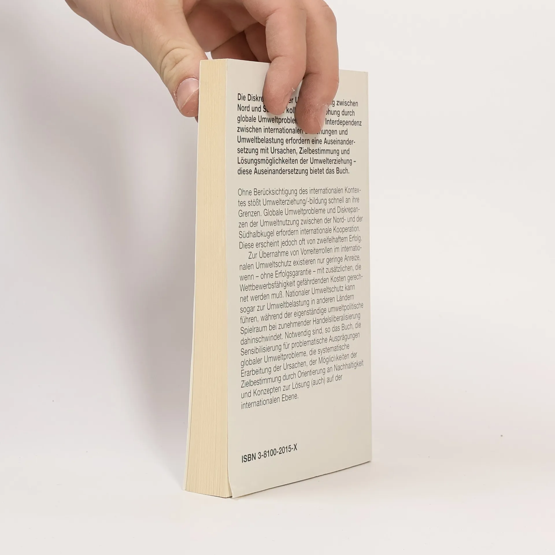 InhaltsverzeichnisDie Diskrepanzen der Umweltnutzung zwischen Nord und Süd, diekollektive Bedrohung durch globale Umweltprobleme und die Interdependenzzwischen internationalen Beziehungen und Umweltbelastung erfordern eineAuseinandersetzung mit Ursachen, Zielbestimmung und Strategien dernachhaltigen, umweltverträglichen Entwicklung unter den Rahmenbedingungen derWeltwirtschaft. Diese für eine sozioökonomische Fundierung derUmwelterziehung notwendige Auseinandersetzung wird in diesem Buch geleistet. Aus dem Inhalt: Ursachen von Umweltbelastung und -übernutzung im Rahmen derWeltwirtschaft Lösungskonzepte internationaler Umweltkooperation Handelspolitik und Umweltschutz unter der Ägide des Freihandels Maßnahmen zur Unterstützung internationaler Umweltkooperation