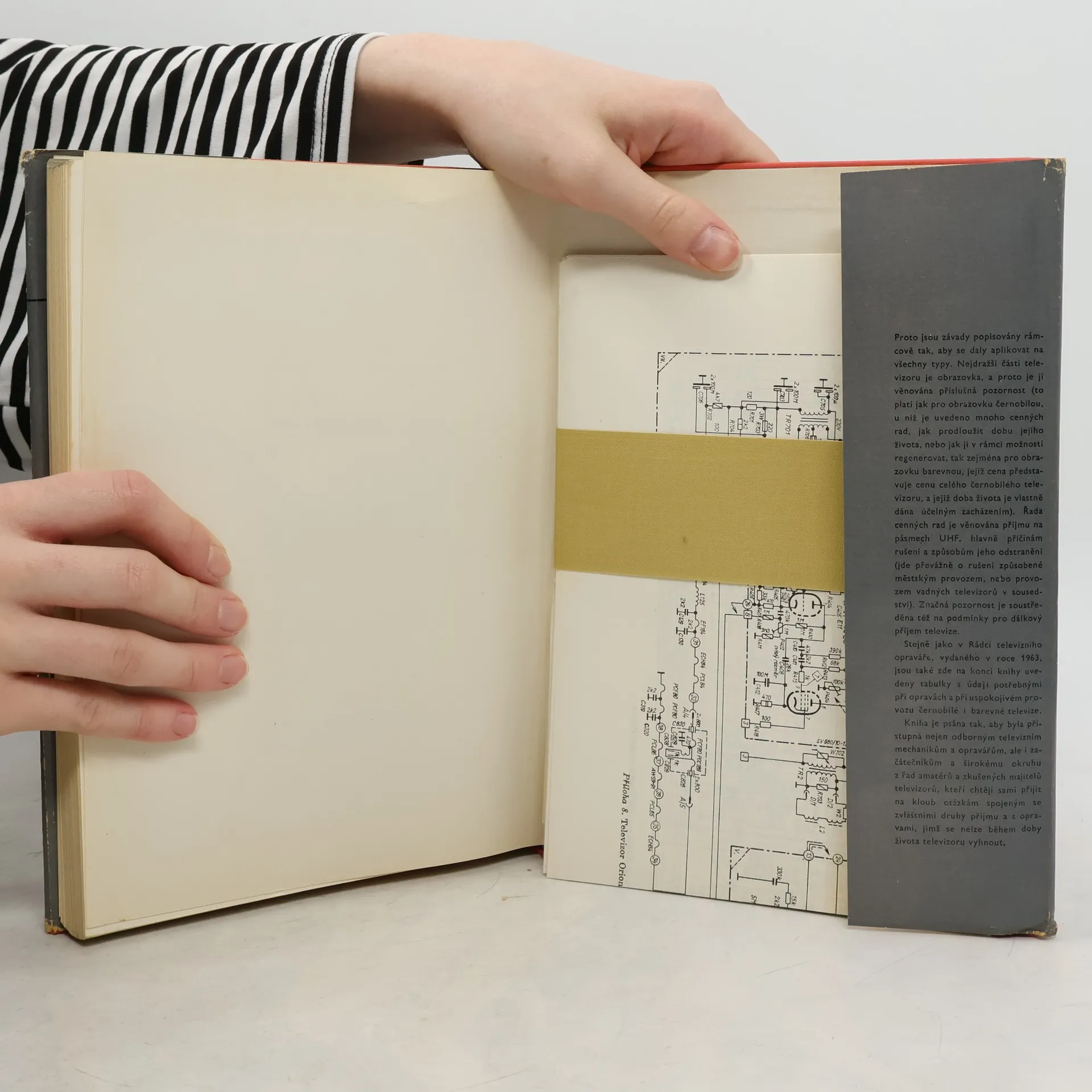 Určeno pracovníkům televizních služeb, učňům, radioamatérům a posluchačům odborných škol. 1. vydání. Autor v letech 1959 až 1962 spolupracoval na vybudování kvalitní opravářské televizní služby v ČSSR. V jeho knize naleznou televizní mechanici látku srozumitelně podanou a do detailůvyčerpanou. Dovědí se, jak systematicky hledat a odstraňovat vady, jak aplikovat měřicí a kontrolní metody i jak zhotovovat pracovní pomůcky a jednoduché pomocné měřicí přístroje. Navíc jsou otištěny důležité normy pro opravu přijímačů.