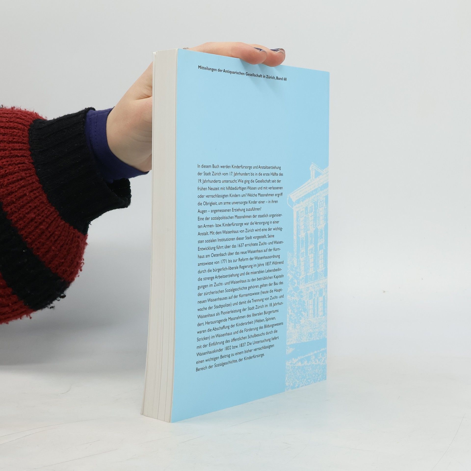 In diesem Buch wird die Kinderfürsorge und Anstaltserziehung in Zürich vom 17. bis zur ersten Hälfte des 19. Jahrhunderts untersucht. Es wird analysiert, wie die Gesellschaft hilfsbedürftige Waisen sowie verlassene oder vernachlässigte Kinder behandelte und welche Maßnahmen die Obrigkeit ergriff, um diese Kinder einer angemessenen Erziehung zuzuführen. Eine zentrale sozialpolitische Maßnahme war die Versorgung in Anstalten, wobei das Waisenhaus Zürich als bedeutende Institution hervorgehoben wird. Erstmals wird die Entwicklung von Verwaltungsorganisation und Erziehungskonzeption durch den Vergleich von Waisenhausordnungen unter Berücksichtigung politischer, sozialer und geistiger Strömungen analysiert. Die Untersuchung beleuchtet die Veränderungen in der Verwaltung und Erziehung der Waisenhauskinder über 200 Jahre, einschließlich der Fortschritte und Traditionen. Die Entwicklung reicht vom 1637 errichteten Zucht- und Waisenhaus am Oetenbach bis zur Reform der Waisenhausordnung durch die bürgerlich-liberale Regierung 1837. Während die strenge Arbeitserziehung und schlechten Lebensbedingungen im Zucht- und Waisenhaus dunkle Kapitel der Sozialgeschichte darstellen, gilt der Bau des neuen Waisenhauses auf der Kornamtswiese als Pionierleistung des 18. Jahrhunderts. Wichtige Maßnahmen des liberalen Ansatzes waren die Abschaffung der Kinderarbeit und die Einführung des öffentlichen Schulbesuchs für Waisenhauskinder. Die Untersuchung