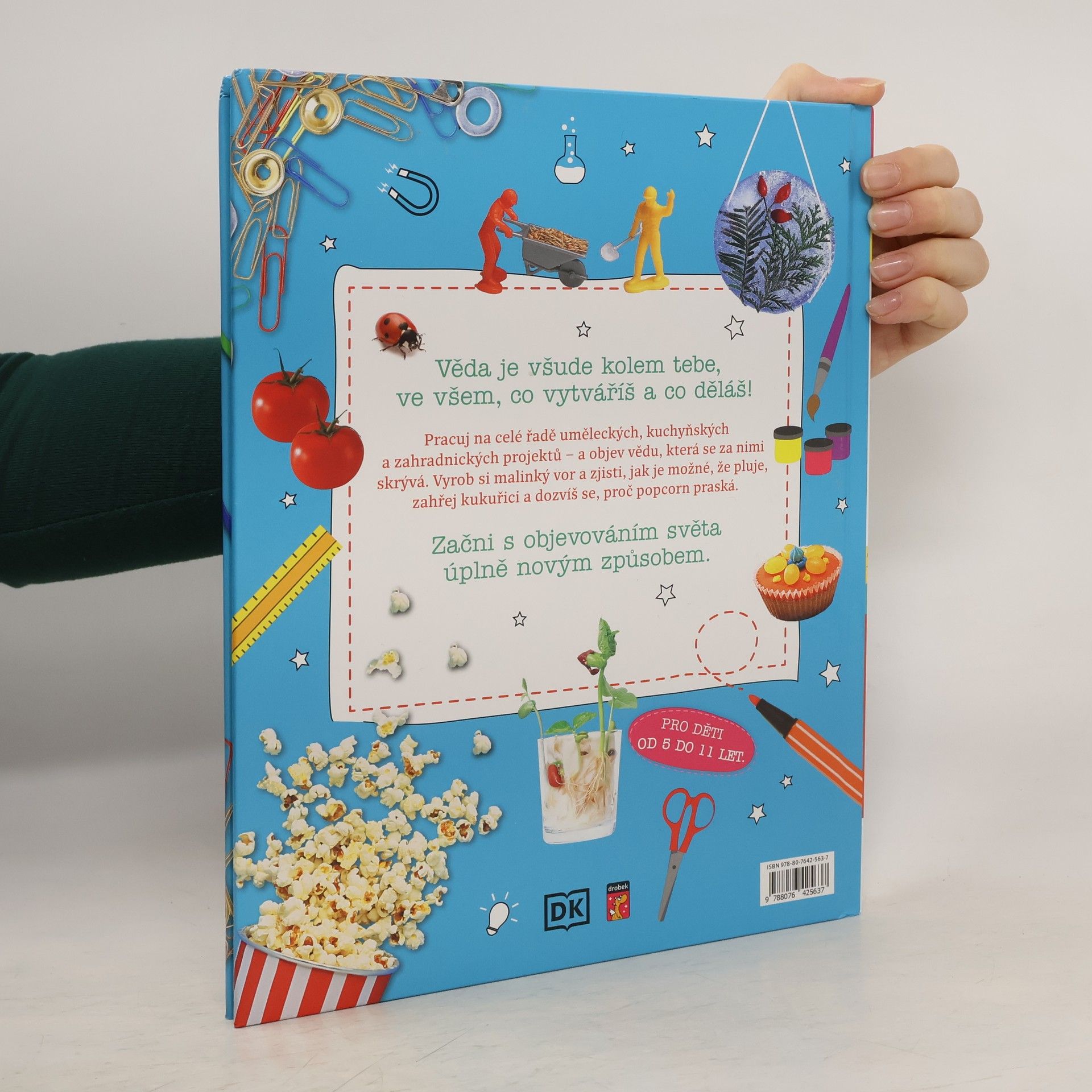 Věda je všude kolem tebe, ve všem, co vytváříš a co děláš! Pracuj na celé řadě uměleckých, kuchyňských a zahradnických projektů – a objev vědu, která se za nimi skrývá. Vyrob si malinký vor a zjisti, jak je možné, že pluje, zahřej kukuřici a dozvíš se, proč popcorn praská. Začni s objevováním světa úplně novým způsobem. Více než 20 úžasných domácích projektů pro malé vědce.