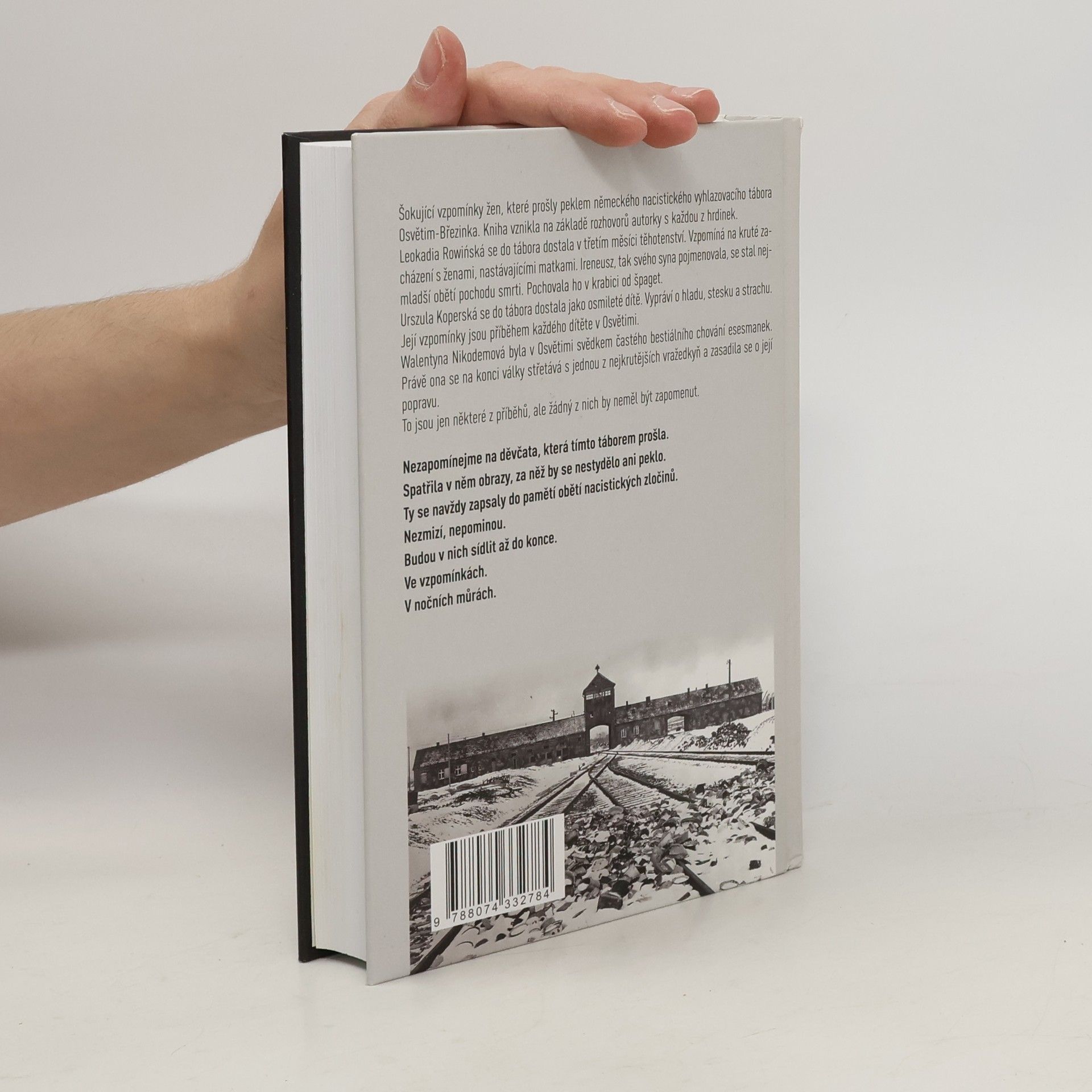 Šokující vzpomínky žen, které prošly peklem německého nacistického vyhlazovacího tábora Osvětim-Březinka. Kniha vznikla na základě rozhovorů autorky s každou z hrdinek. Leokadia Rowińská se do tábora dostala v třetím měsíci těhotenství. Vzpomíná na kruté zacházení s ženami, nastávajícími matkami. Ireneusz, tak svého syna pojmenovala, se stal nejmladší obětí pochodu smrti. Pochovala ho v krabici od špaget. Urszula Koperská se do tábora dostala jako osmileté dítě. Vypráví o hladu, stesku a strachu. Její vzpomínky jsou příběhem každého dítěte v Osvětimi. Walentyna Nikodemová byla v Osvětimi svědkem častého bestiálního chování esesmanek. Právě ona se na konci války střetává s jednou z nejkrutějších vražedkyň a zasadila se o její popravu. To jsou jen některé z příběhů, ale žádný z nich by neměl být zapomenut. Nezapomínejme na děvčata, která tímto táborem prošla. Spatřila v něm obrazy, za něž by se nestydělo ani peklo. Ty se navždy zapsaly do pamětí obětí nacistických zločinů. Nezmizí, nepominou. Budou v nich sídlit až do konce. Ve vzpomínkách. V nočních můrách.