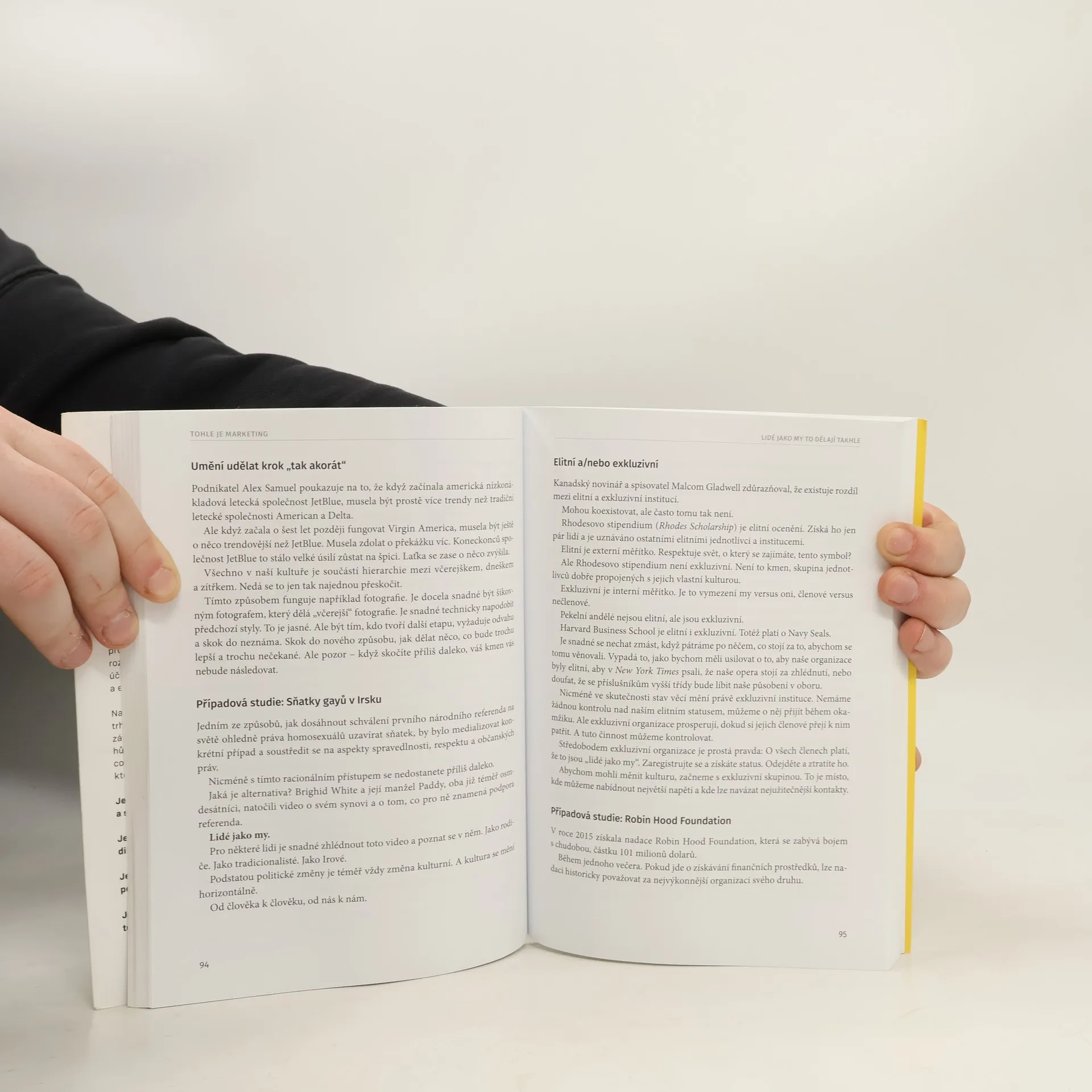V průběhu uplynulého čtvrtstoletí inspiroval Seth Godin miliony podnikatelů, lídrů a fanoušků všech možných profesí. Nyní poprvé nabízí esenci své marketingové moudrosti v jednom dostupném a nadčasovém balíčku. Jeho koncepce vychází z jedné zásadní myšlenky: Vynikající marketéři nevyužívají spotřebitele k řešení problémů svých vlastních společností, ale využívají marketing k řešení problémů druhých lidí. Nevyvolávají pouhý rozruch – zlepšují svět. Základem skutečně účinného marketingu je velkorysost, empatie a emocionální práce. Naučte se definovat nejmenší životaschopný trh. V rámci svého trhu pak získejte důvěru zákazníků. Naslouchejte jejich životním příběhům, abyste je pochopili a pomohli jim najít to, co hledají. A především dejte lidem nástroje, které jim k dosažení jejich cílů pomohou.