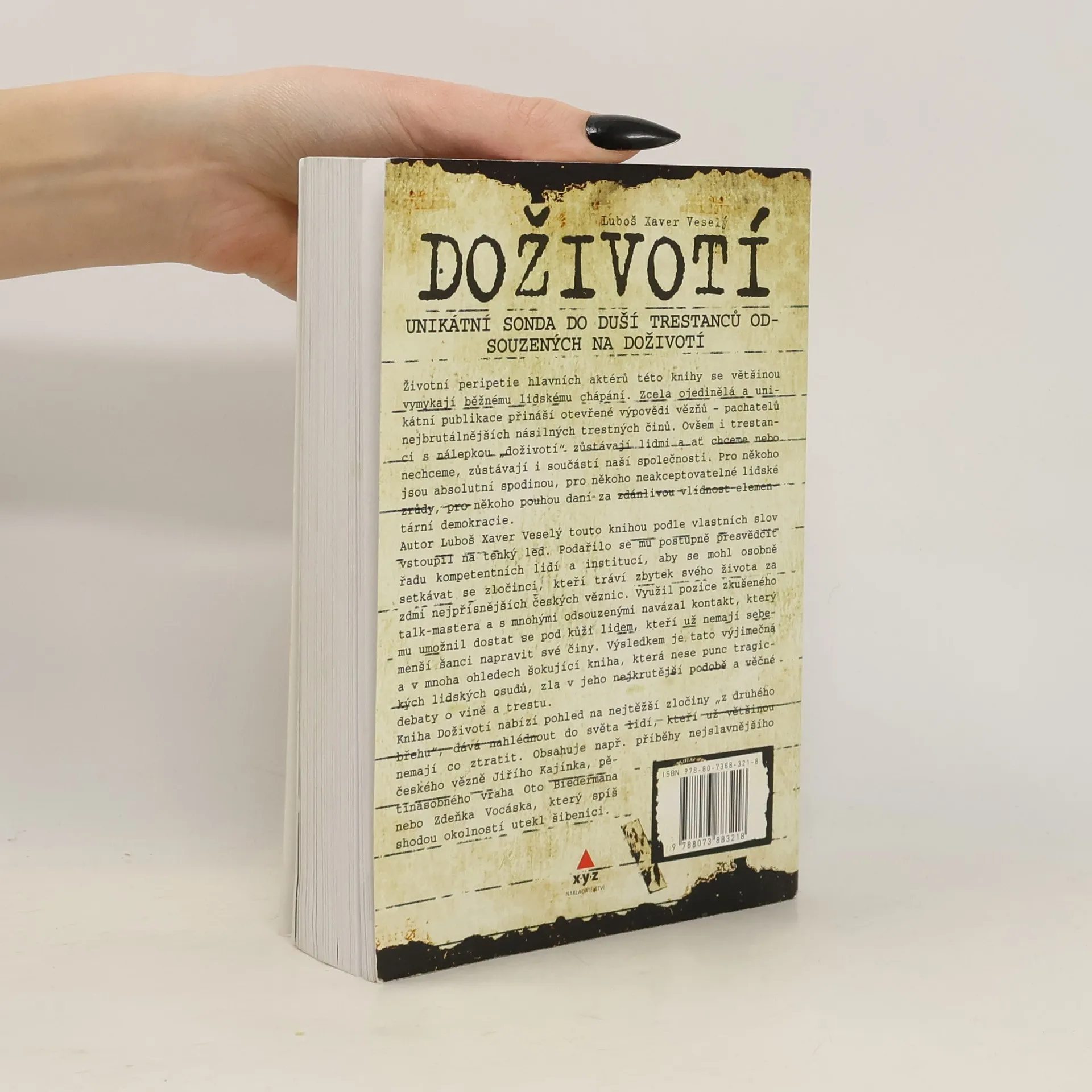 Zcela unikátní kniha, která nemá v Čechách obdoby. V českých věznicích žije více než třicet doživotně odsouzených vězňů. Všichni odsouzení odpykávají trest za hrůzné činy, které se zcela vymykají lidskému chápání. Ovšem jsou to stále lidé, kteří mají pocity, emoce a často i pocit nespravedlnosti s tím jak byl jejich proces veden. Autor Luboš Veselý se rozhodl pro velmi nelehlý úkol. Podařilo se mu přesvědčit mnoho kompetentních lidí, kteří mu umožnili osobní setkání ve věznicích a především dokázal přesvědčit vězně k autentické a otevřené zpovědi, která je základem této knihy. Máte tedy možnost číst výpovědi Jiřího Kajínka, Oto Bierdemana, Ludvíka Černého či posledního vězně odsouzeného původně k trestu smrti Zdeňka Vocáska. Nejedná se věru o veselé čtení, ale přesto je mnoha ohledech poučné a přínosné.
