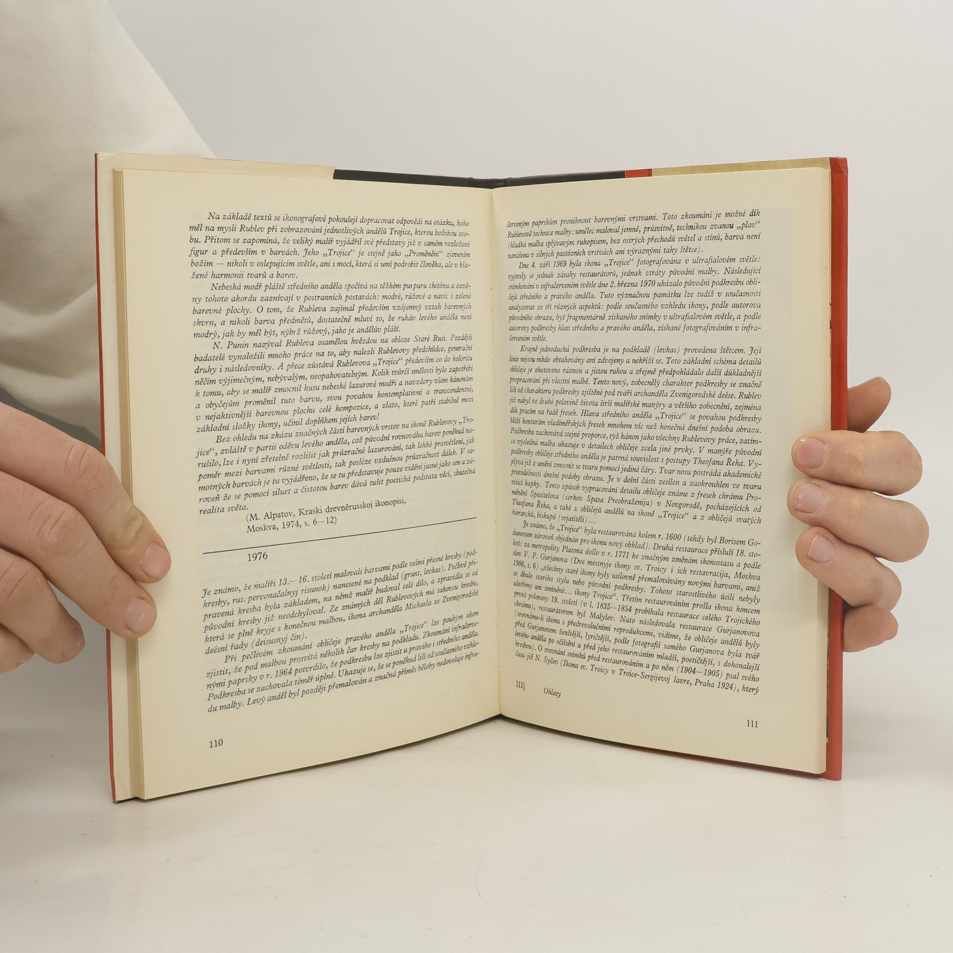 Sovětský historik umění osvětluje v monografii na pozadí dobové historie tvorbu a život ruského středověkého malíře ikon a fresek (asi 1370–1430), shromažďuje ohlasy o něm a provází jeho dílem. České vydání je proti ruské edici z r. 1966 rozšířeno v Ohlasech (část 3.), ale i bibliografii o řadu nových rublevovských studií a zhrnuje jen lépe zachované obrazové přílohy. Obr. příl. uspoř. Hana Hlaváčková. Fot.: Jiří Hampl.